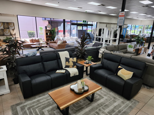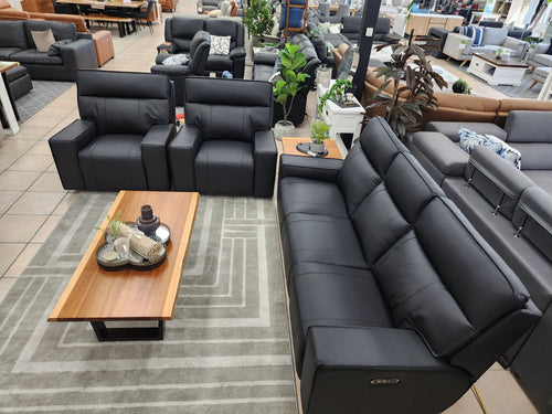 Caruso 100% Leather Modular With 3 x Electric Recliners In Black