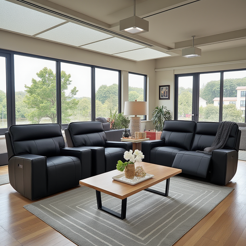 Rockville 3+1+1 Dual Motion Recliner Package in Black Leather