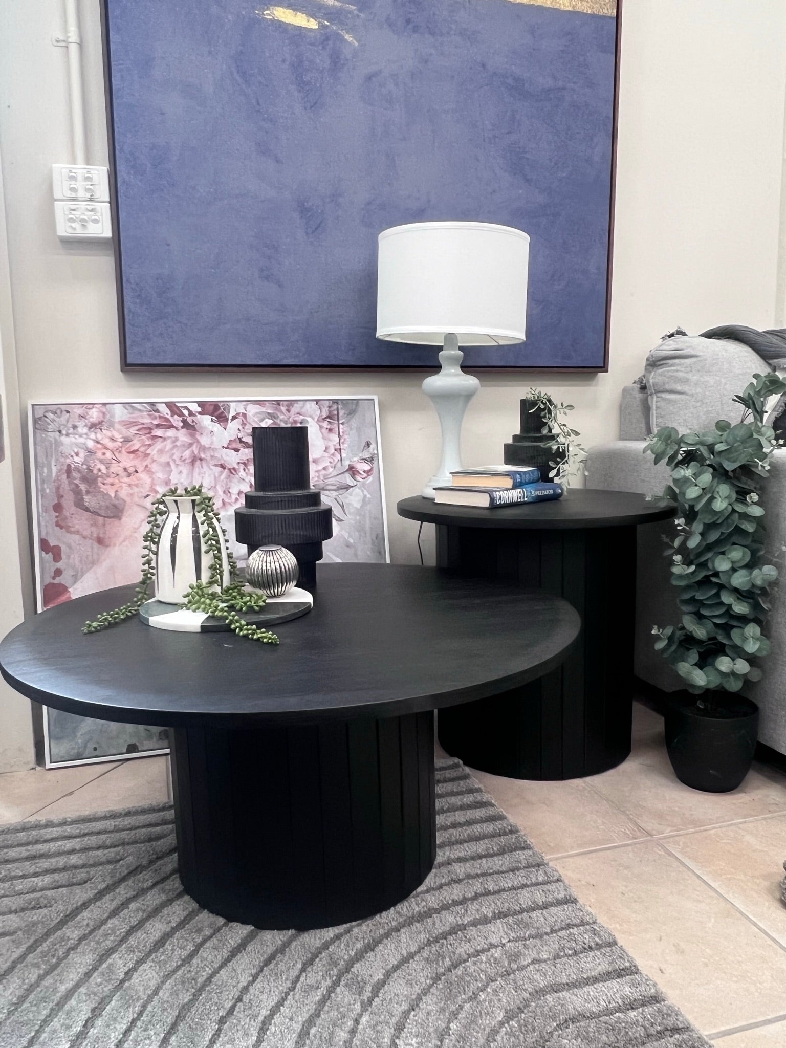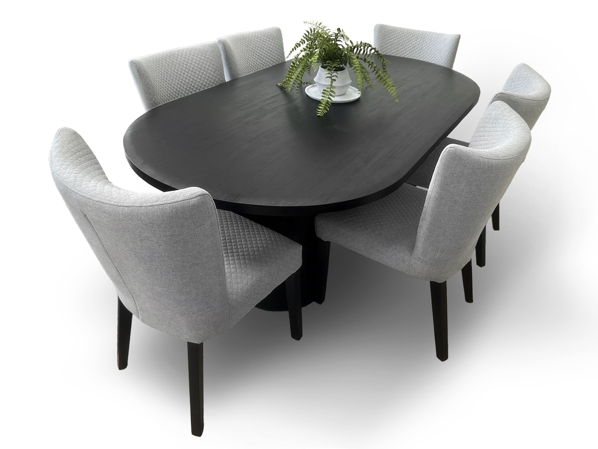 This living package includes the 7 piece dining setting with the 2.1m table, buffet, medium sized TV unit, round coffee table and lamp table.