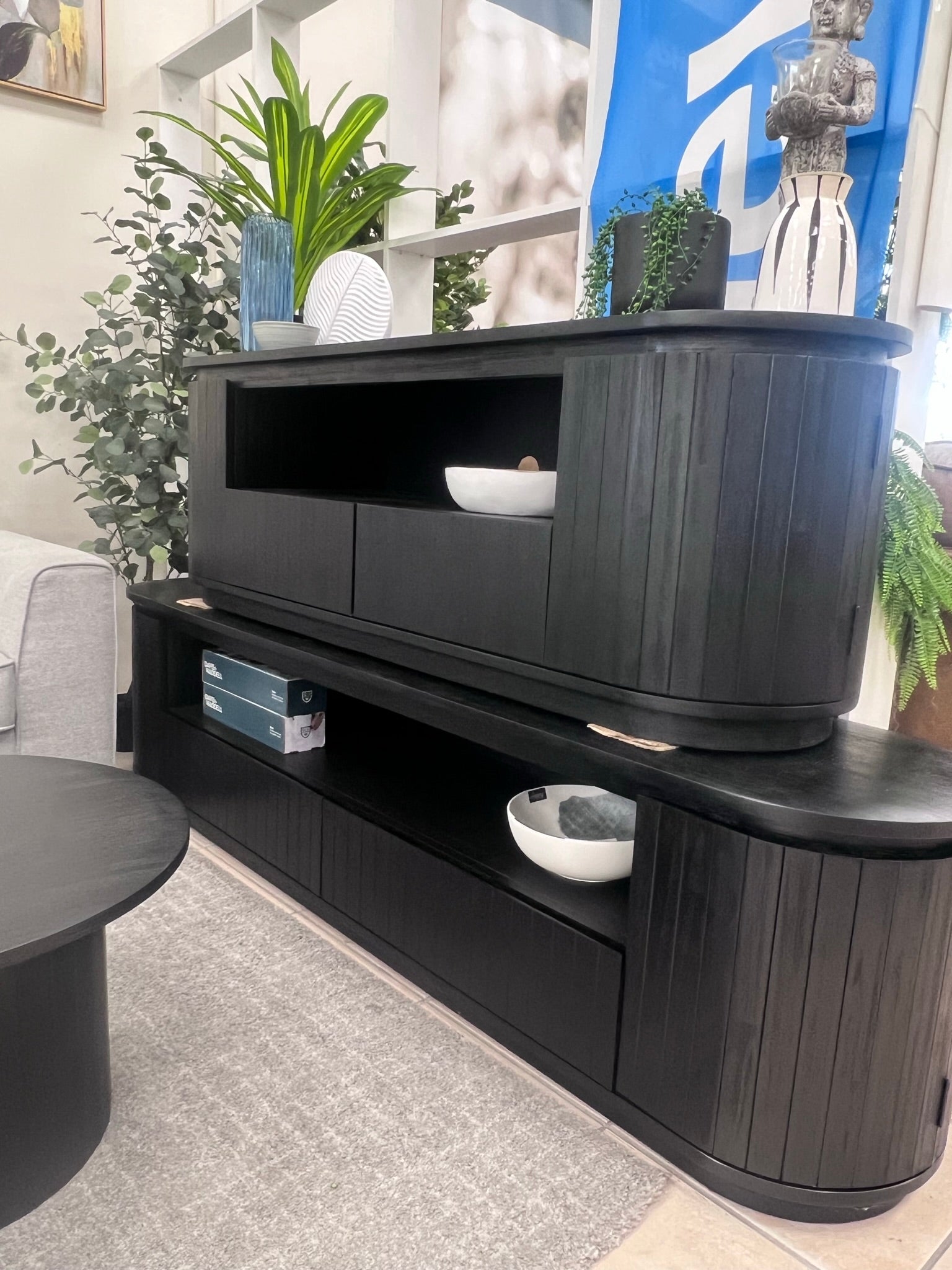 Crafted from Acacia timber, with a curvaceous design, enhanced by the round rippled base.