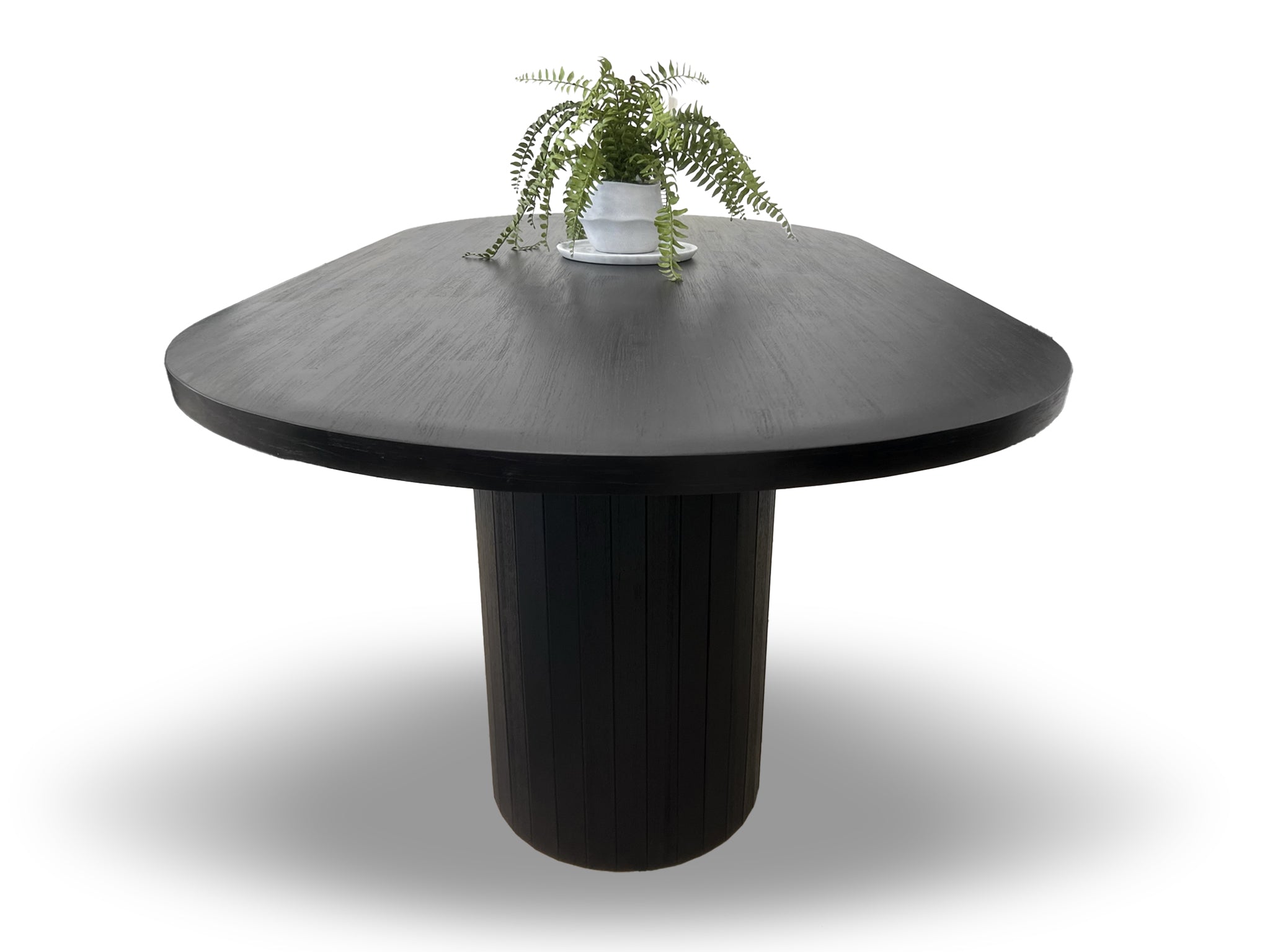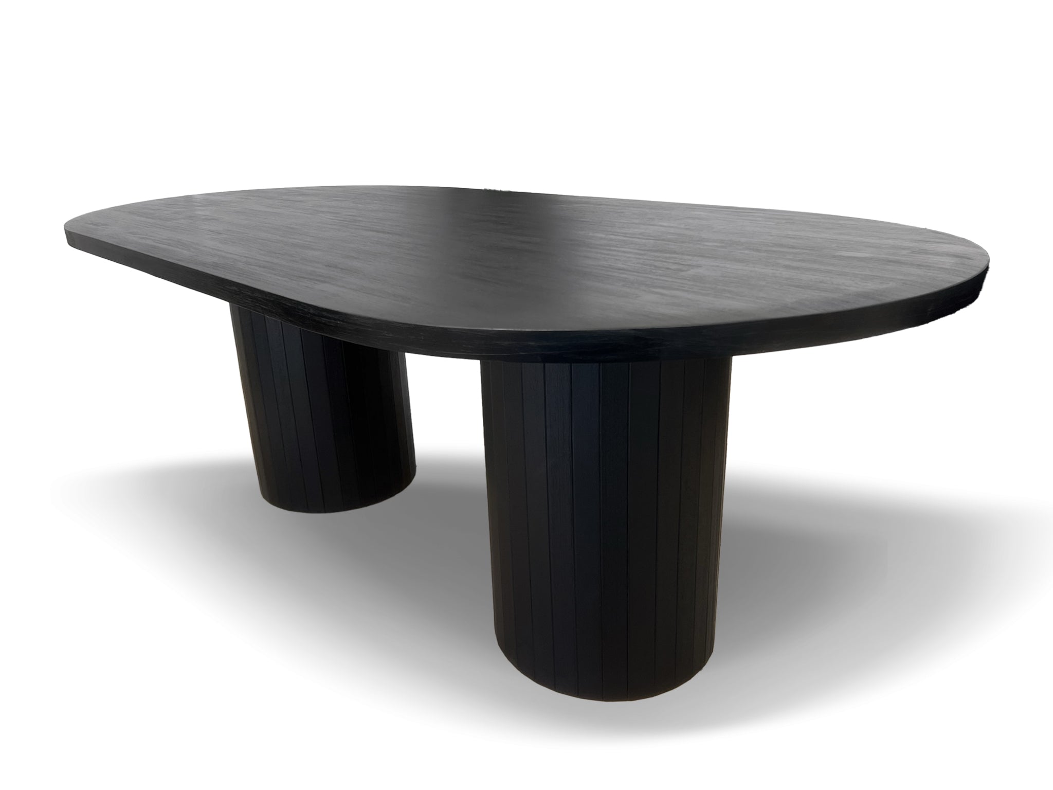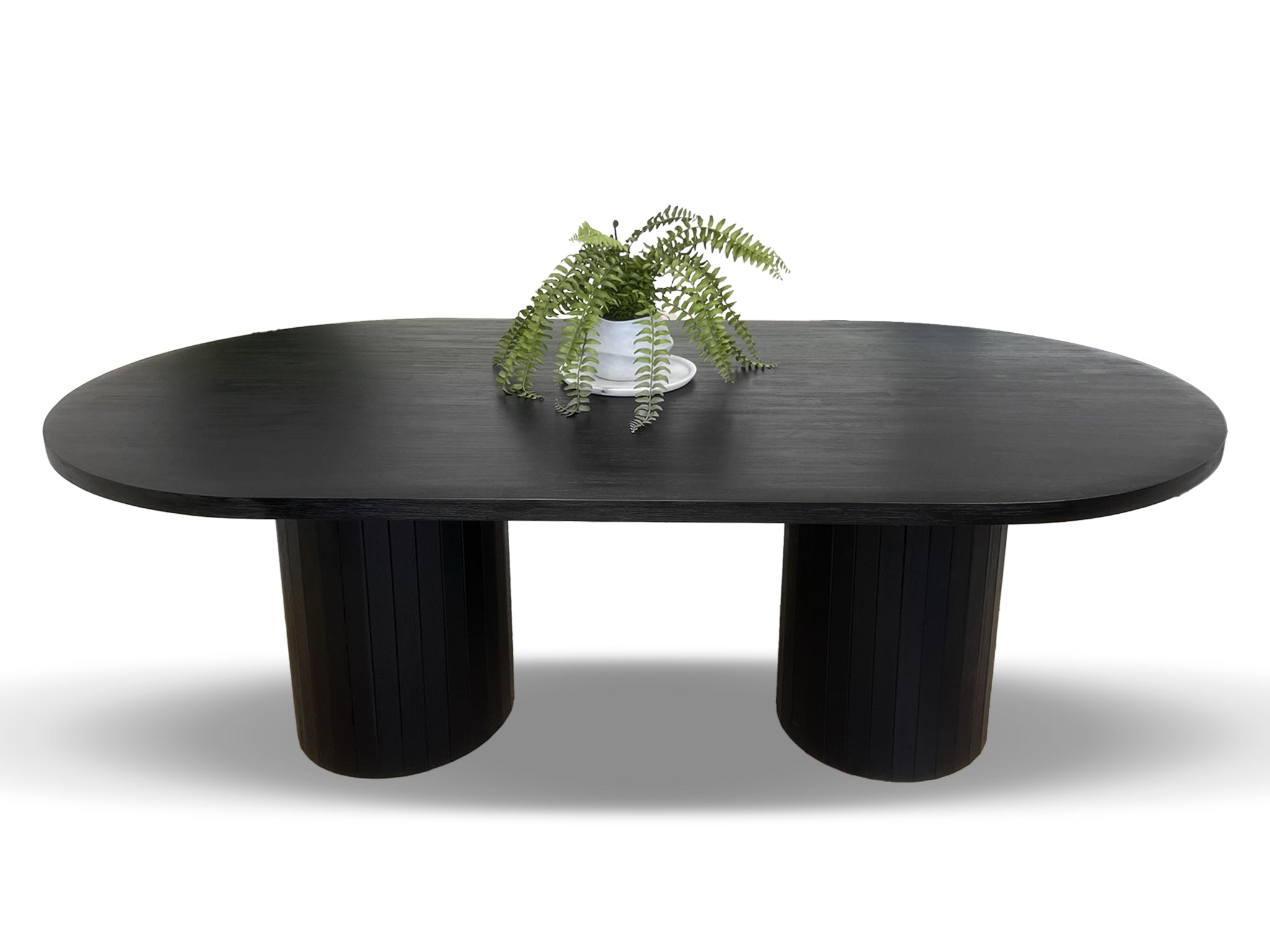 Featuring gentle curves and soft fluting. The Athena is hand crafted in solid hardwood and will make an impact in any home. The rippled cylindrical bases and bold matte black is sure to be the statement piece/s of your living space.