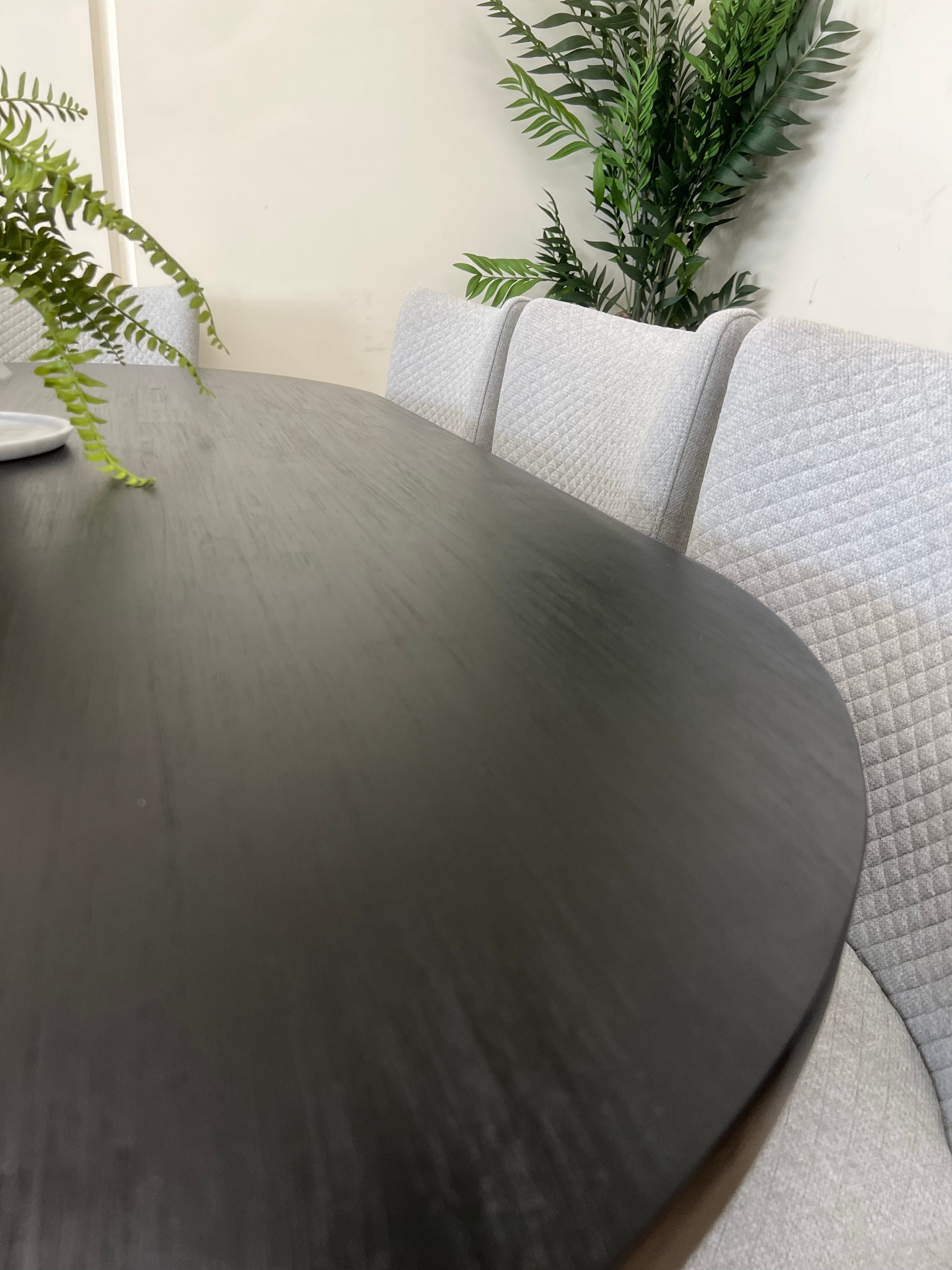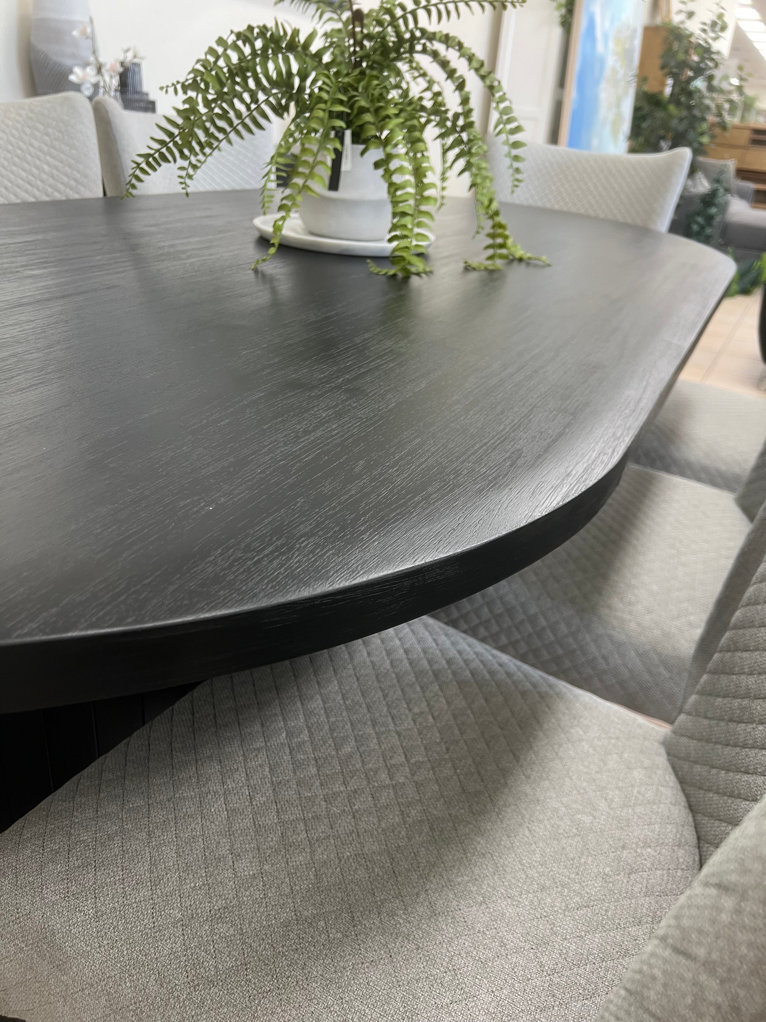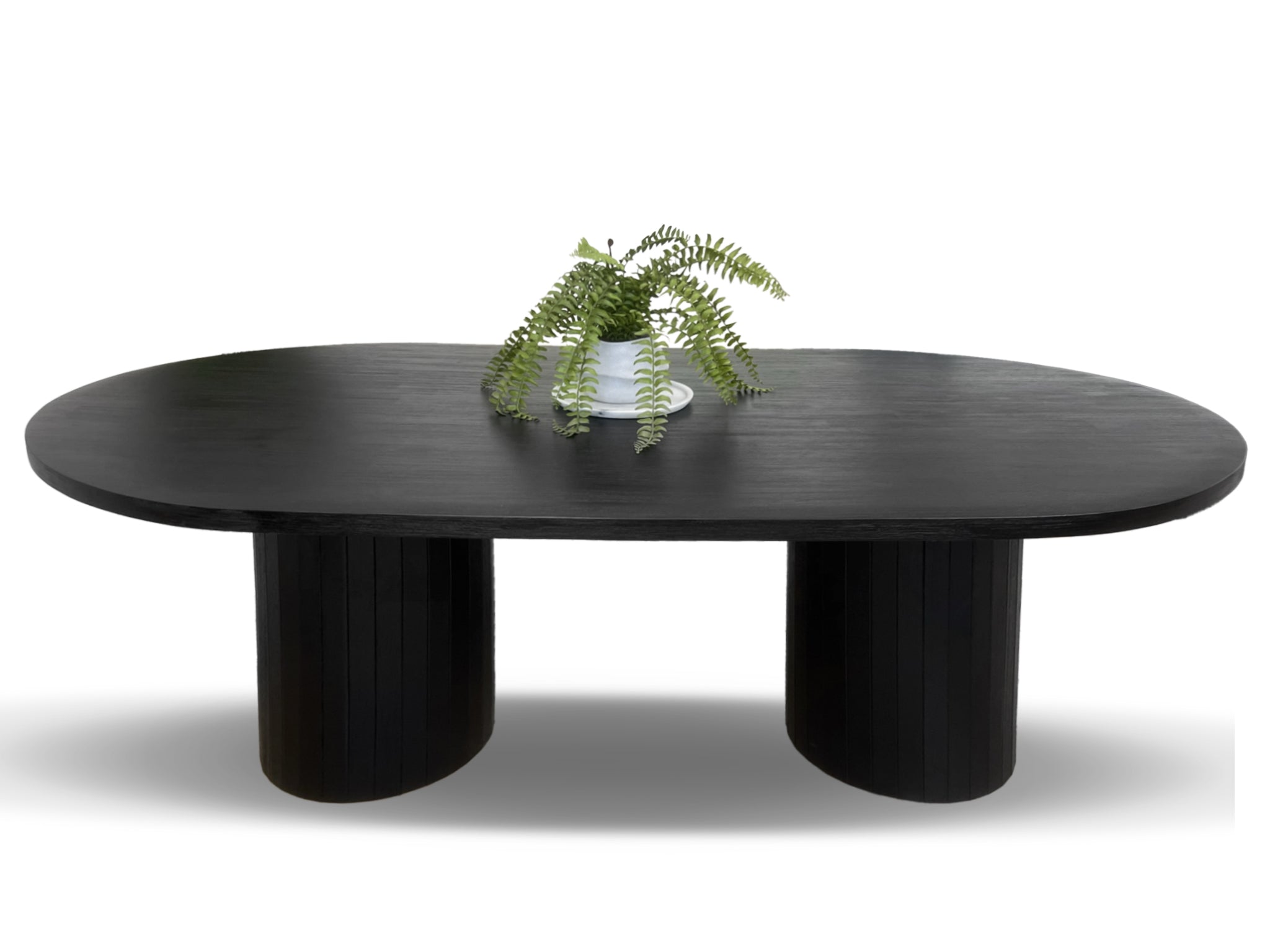 Featuring gentle curves and soft fluting. The Athena is hand crafted in solid hardwood and will make an impact in any home. The rippled cylindrical bases and bold matte black is sure to be the statement piece/s of your living space.