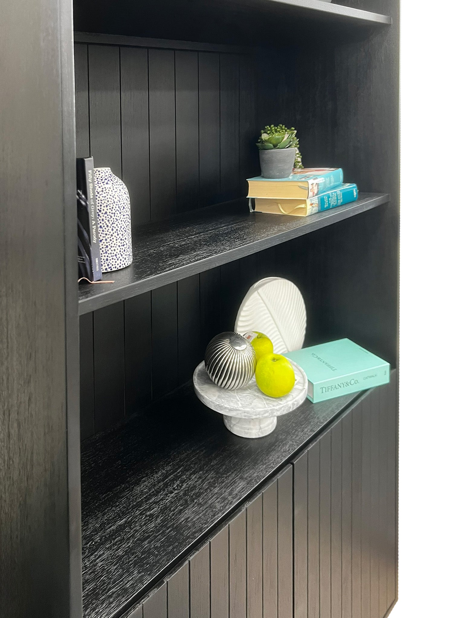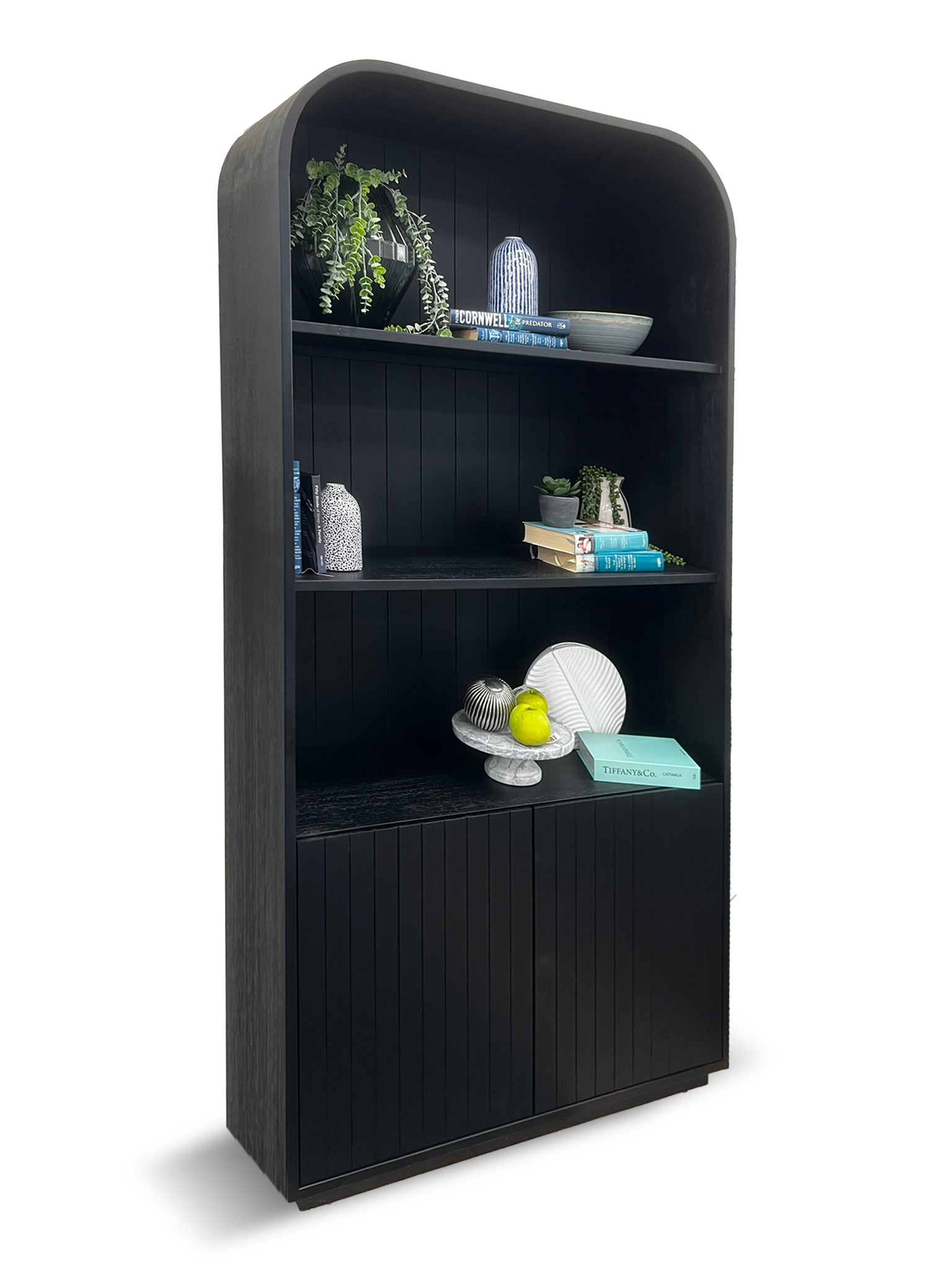Featuring gentle curves and soft fluting. The Athena is hand crafted in solid hardwood and will make an impact in any home. The rippled cylindrical bases and bold matte black is sure to be the statement piece/s of your living space.