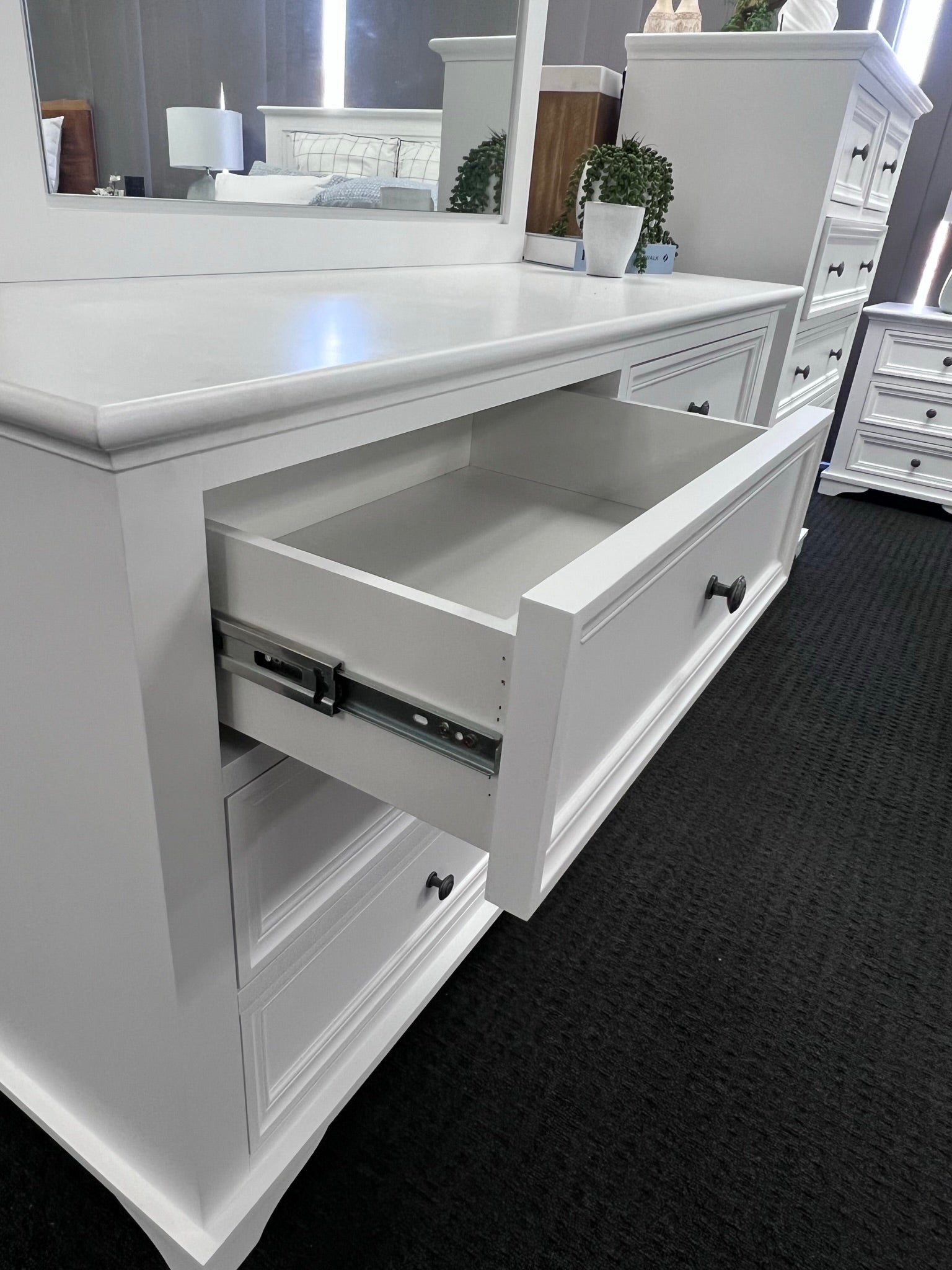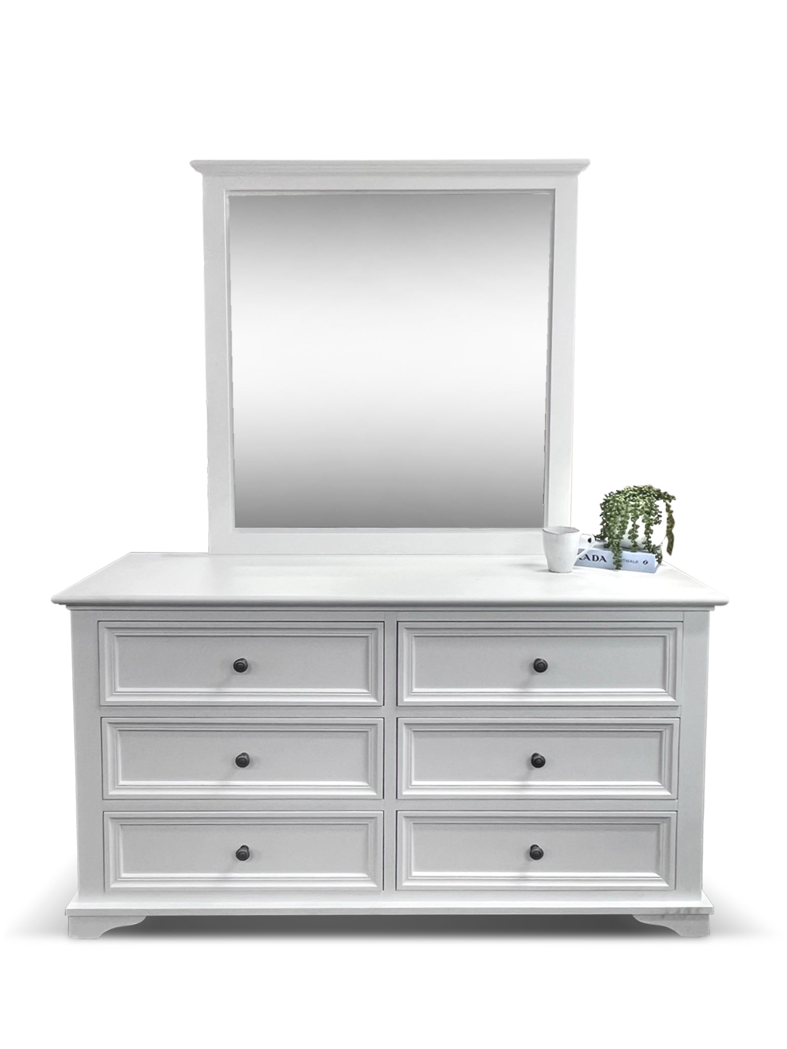 Dresser base and mirror are packed separately.