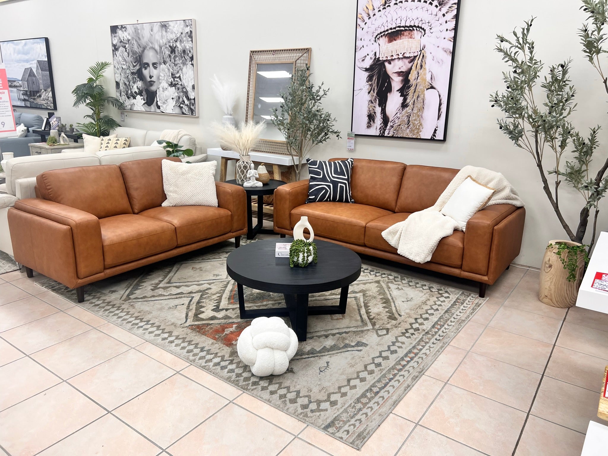 Experience modern elegance with the Daintree 3 seater Sofa Crafted from 100% premium tan leather, these sofas blend sophisticated comfort with contemporary style, ensuring a timeless and tasteful look. Perfect for creating a luxurious yet affordable living space, the Daintree is real value for money.