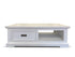 The Eastport collection in all over white hardwood timber gives an extremely clean and fresh look. Suitable for everything from formal living rooms to relaxed coastal homes. Fully assembled with unique hardwood sand blasted surface and finished in Crip white.