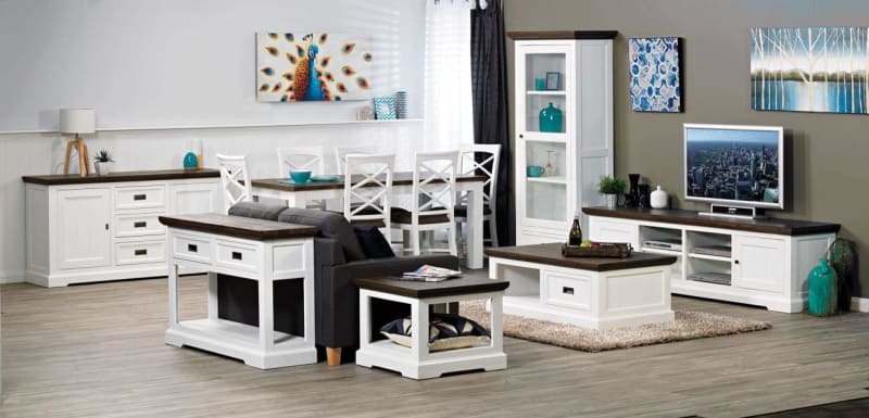 The Hamptons range of furniture features an elegant combination of white and brown two toned solid hardwood timber. The Hamptons combines the warm tones of timber with the lightness of a white exterior for a beachside feel with a contemporary twist. The Hamptons range is the real deal all fully assembled, glued and screwed with not a allen key in sight.