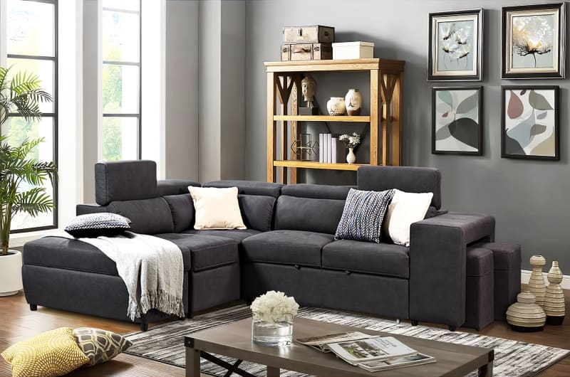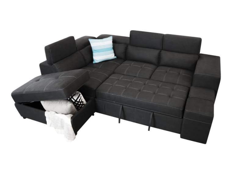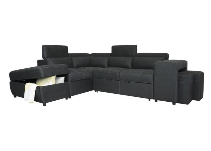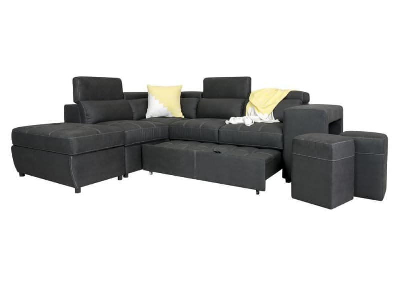 Hermes Left Chaise with sofa bed in Charcoal