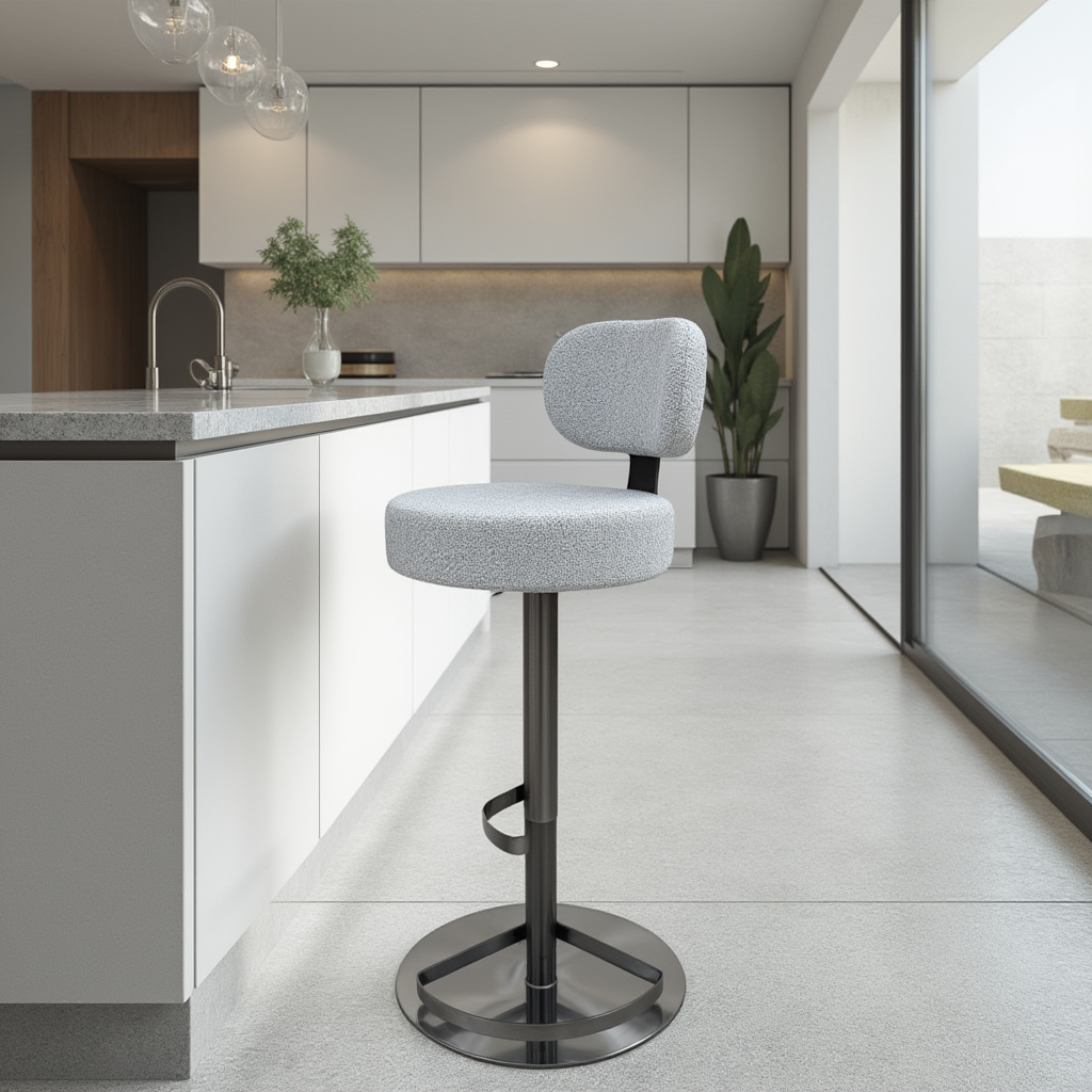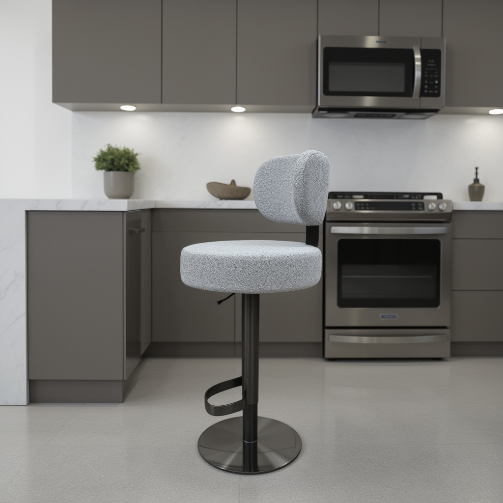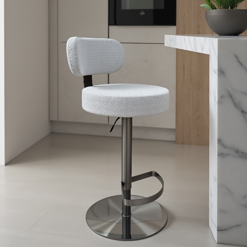 Jarvis Premium Bar Stool In Light Grey Upholstery
