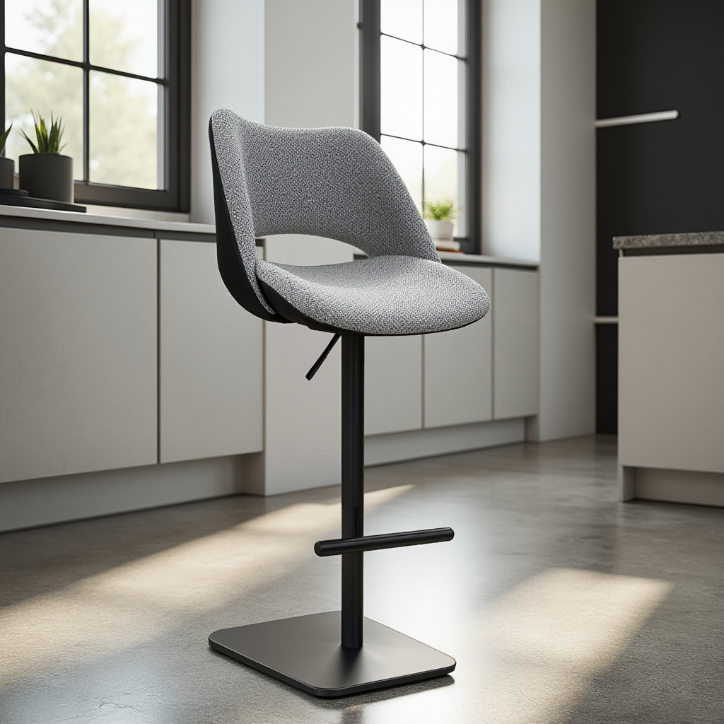 Joice Premium Bar Stool In Two Tone Grey Upholstery