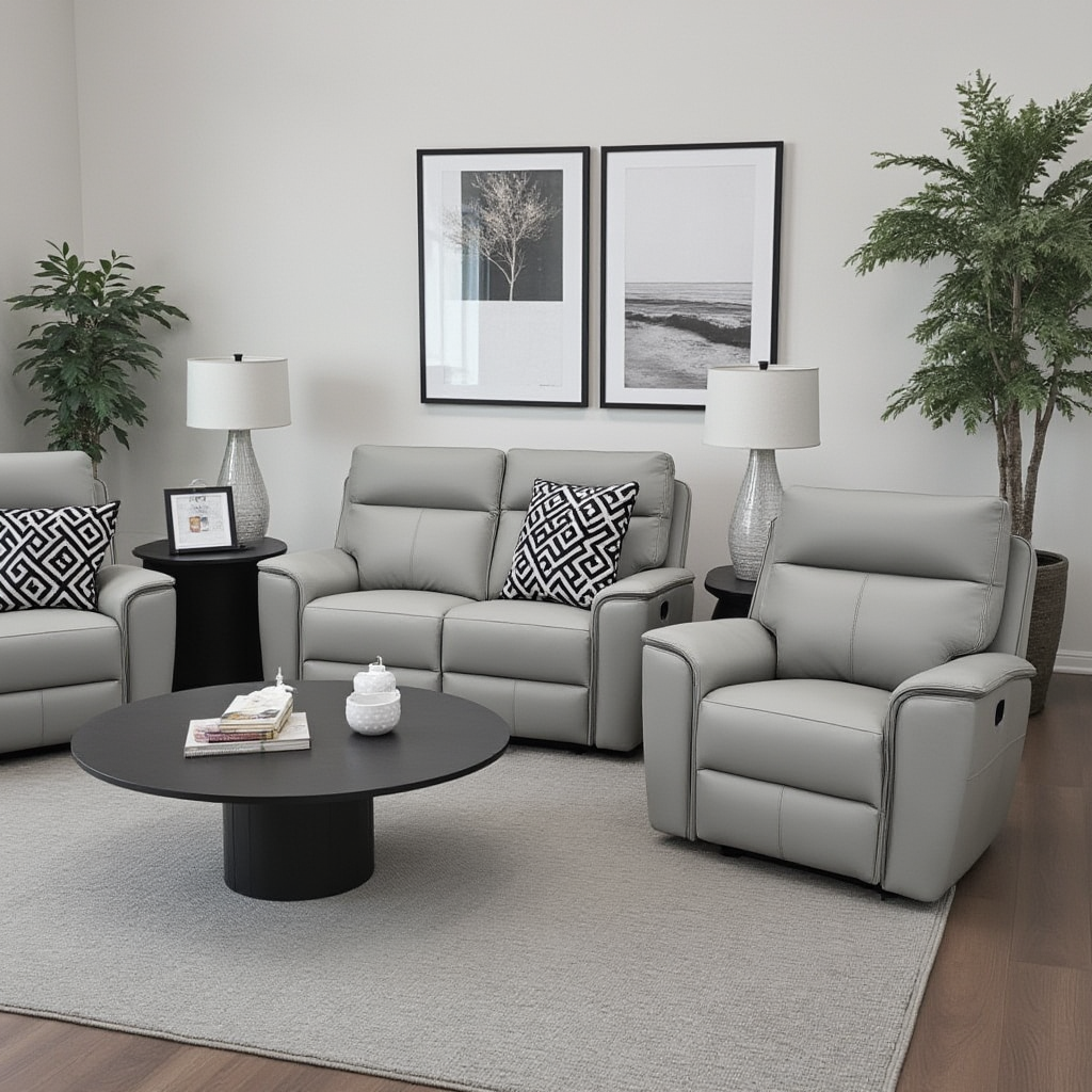 Experience ultimate comfort and luxury with our Liza recliner package. Crafted from 100% premium leather, this 2+1+1 set includes inbuilt recliners in the 2 seater and two separate recliner chairs. Available in a variety of colors, indulge in style and relaxation with our Liza set.