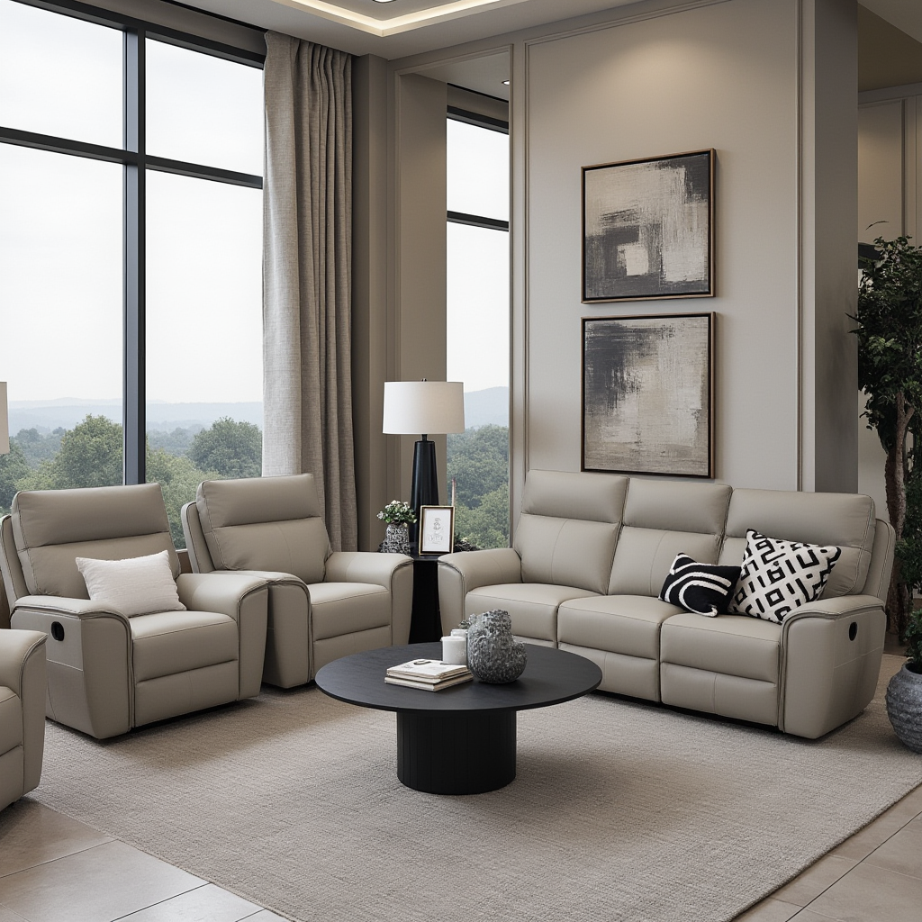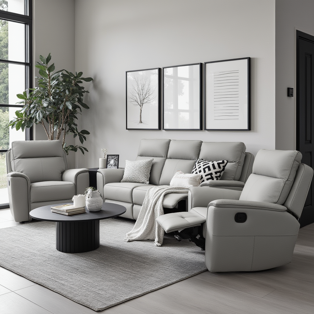 Experience luxury and comfort with the Liza 3+1+1 In Grey Leather set. Made of 100% premium leather, each piece features inbuilt recliners for ultimate relaxation. Upgrade your living space with this elegant and functional set.
