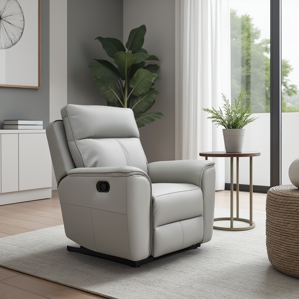 Enjoy luxurious comfort and style with our Liza Recliner in Grey Leather. Made from 100% premium leather, this recliner chair offers ultimate relaxation. Choose from a variety of colors to match your home decor. Upgrade your living space with the Liza Recliner today.