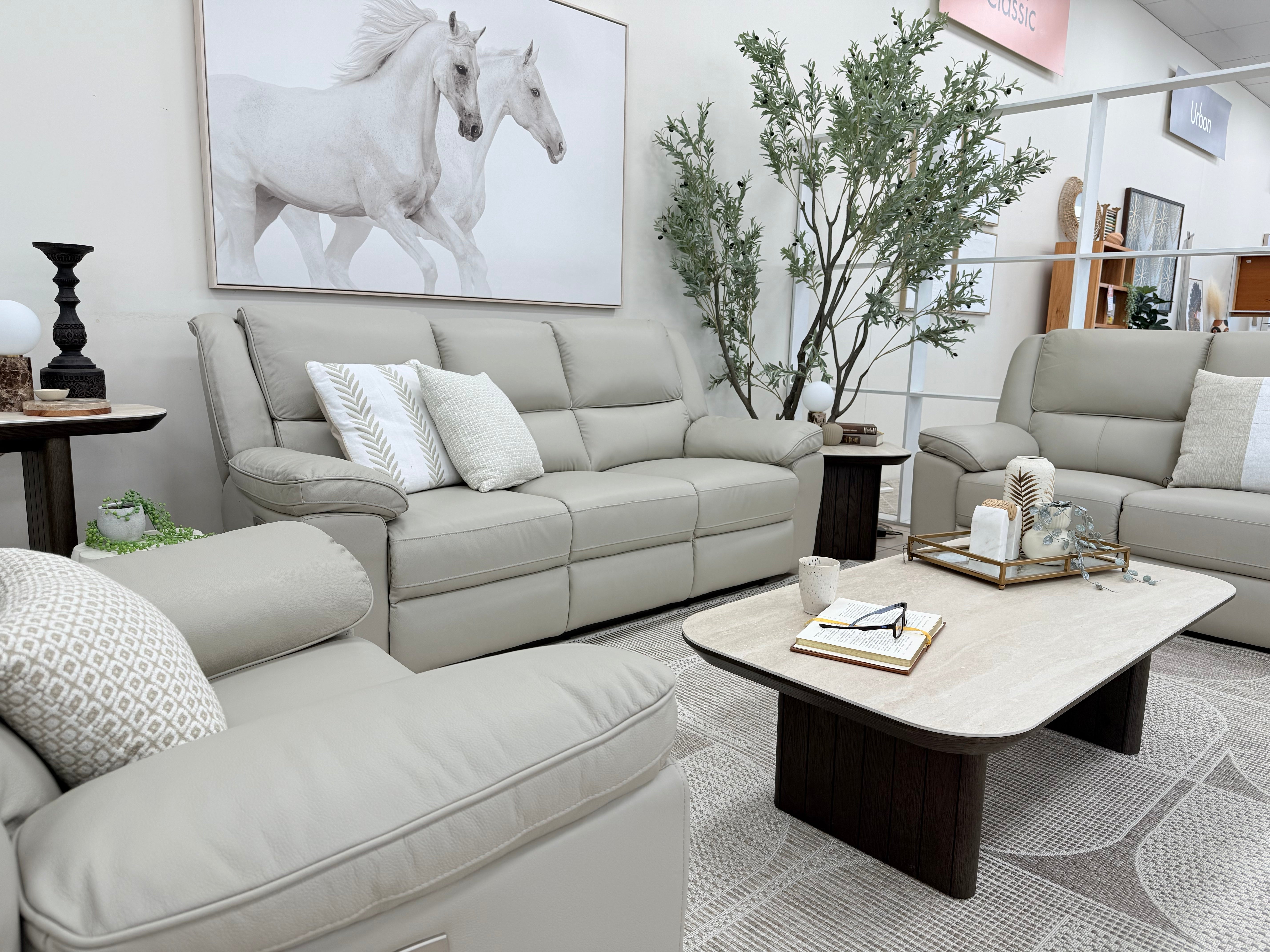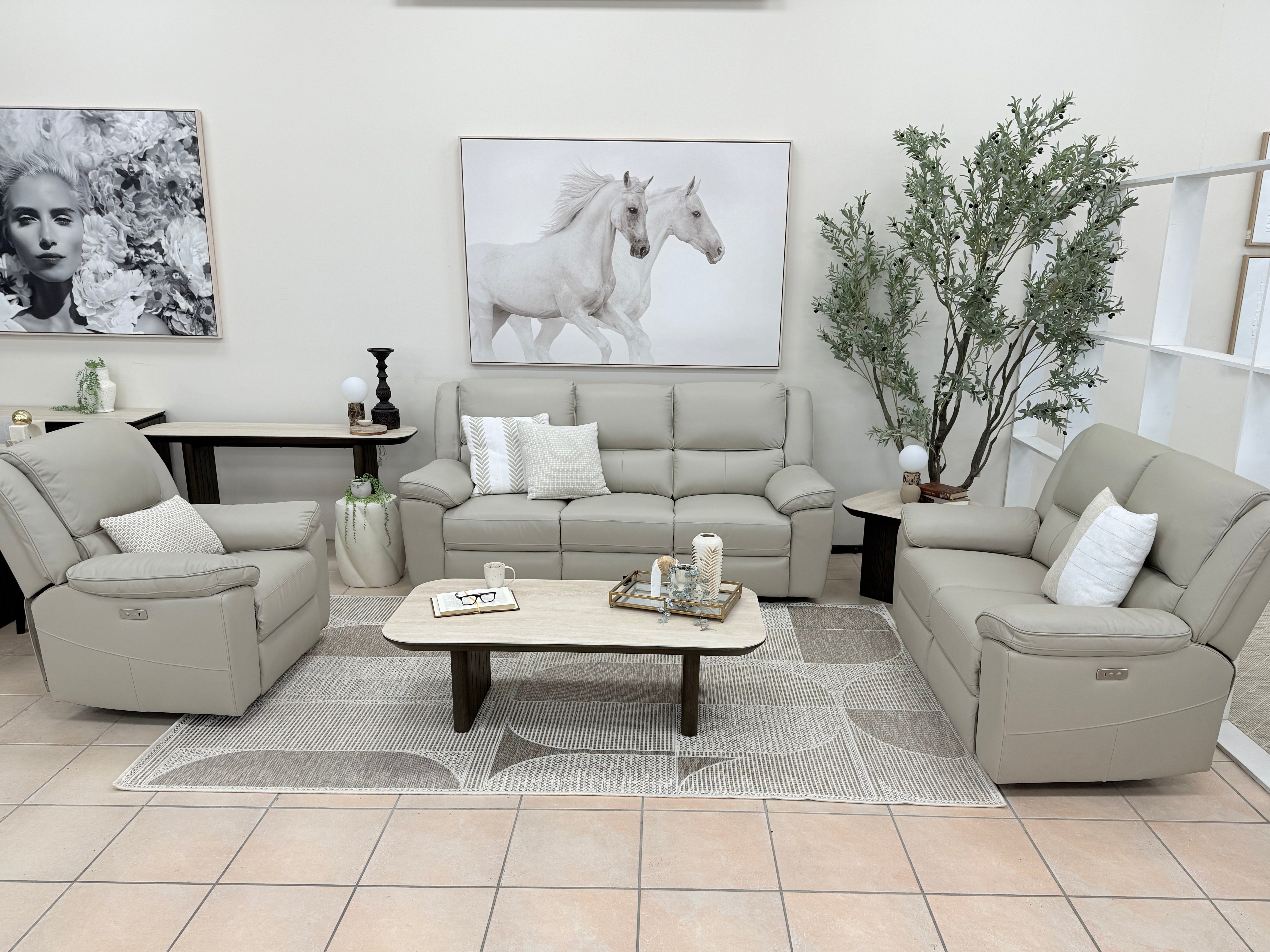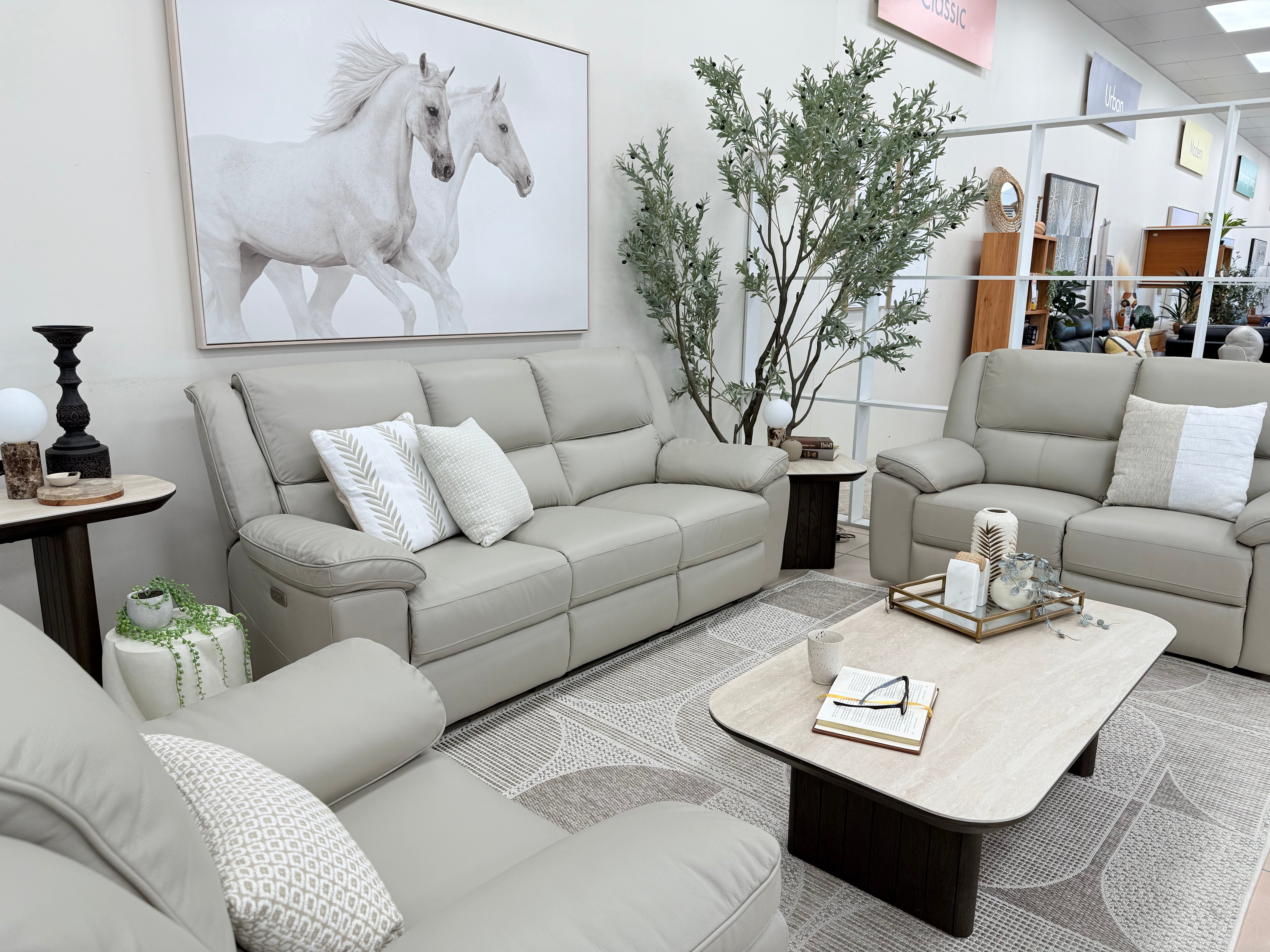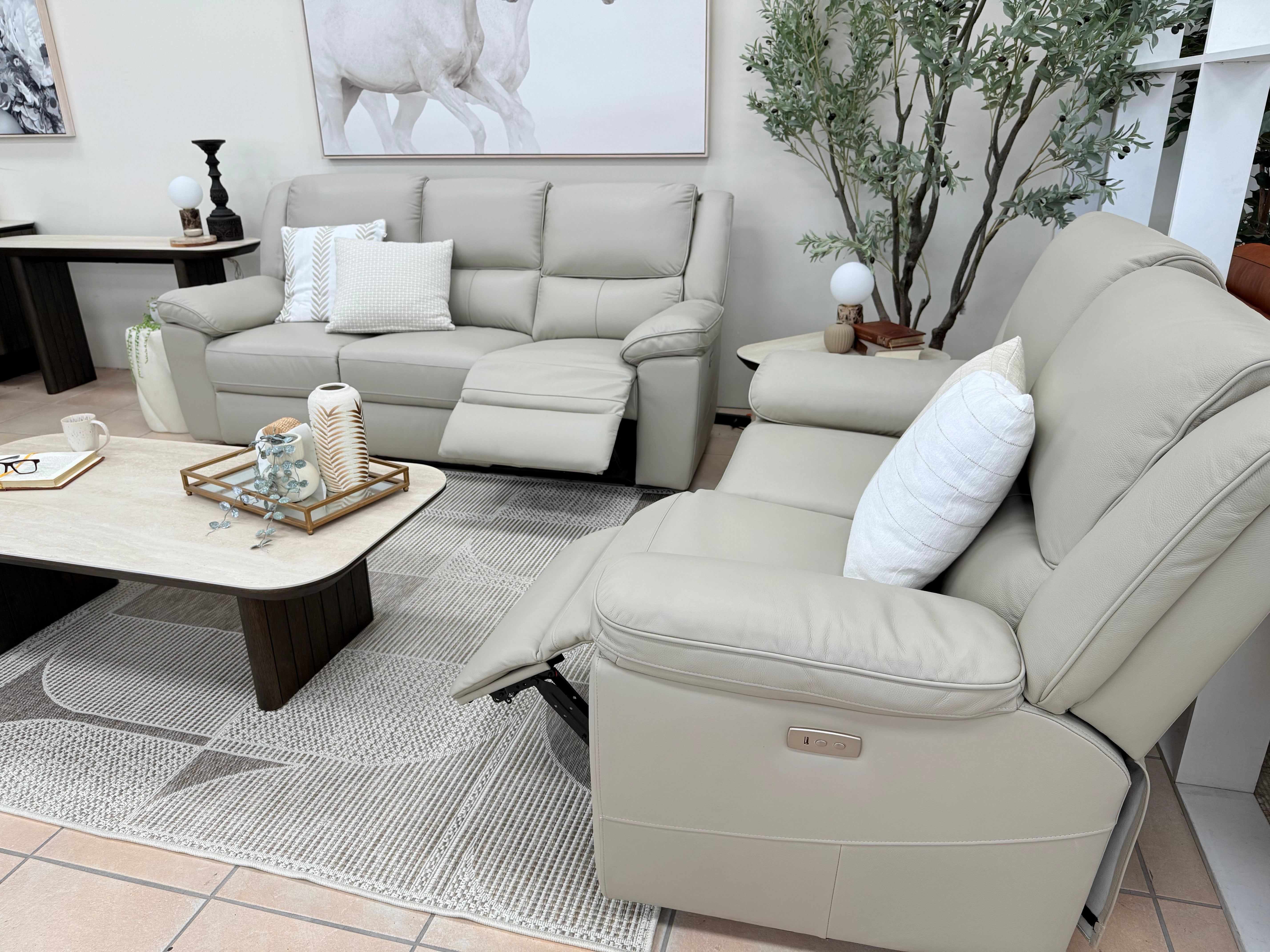 Includes 3 seater with inbuilt electric recliners, single electric recliner chair and 2 seater with inbuilt electric recliners. The Michigan range is a mix of contemporary smooth lines with traditional high back comfort and beauty. These reclining lounges are upholstered in our most premium cow hide leather and are equipped with genuine leggett & platt electric reclining mechanisms. Each reclining button also features USB charging ports.
