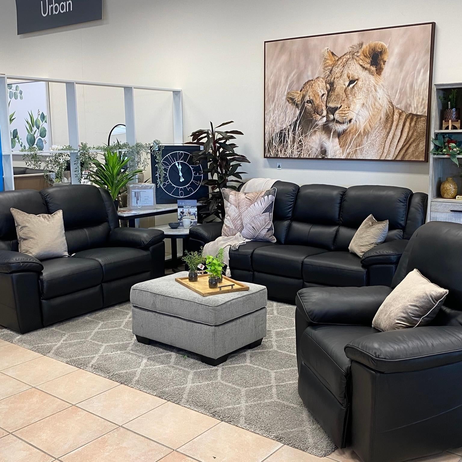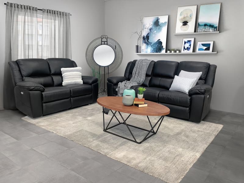 Includes 3 seater with inbuilt electric recliners and 2 seater with inbuilt electric recliners. The Michigan range is a mix of contemporary smooth lines with traditional high back comfort and beauty. These reclining lounges are upholstered in our most premium cow hide leather and are equipped with genuine leggett & platt electric reclining mechanisms. Each reclining button also features USB charging ports.