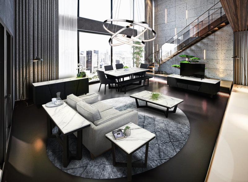Elevate your dining & living spaces with the Mintaro range. Composed of stunning High Density Marble, sitting on an elegant contrasting black Oak frame, it exudes functionality and beauty.