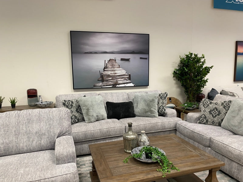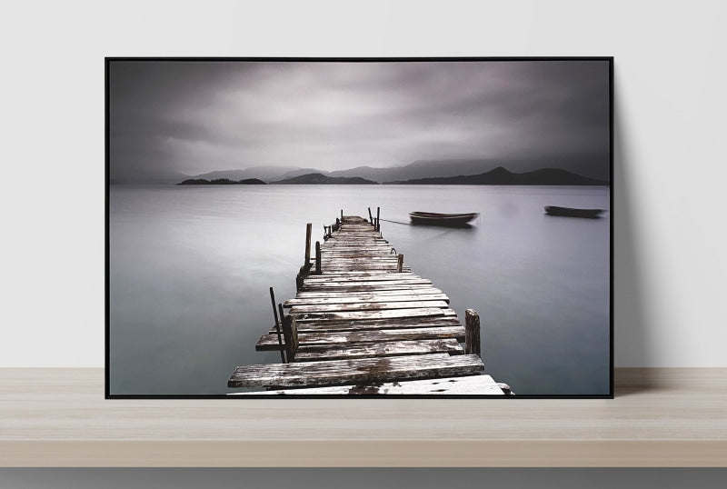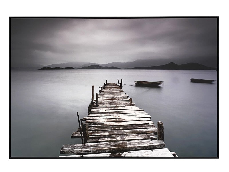Printed on high quality glossy poly-cotton canvas featuring high whiteness and superior colour brilliance and image definition with UV stabilised solvent ink. The canvas is stretched over a sturdy support frame and is assembled with a Matt open grain stained timber floating moulding with a shadow line, with D-Rings and strung with cord ready to hang.