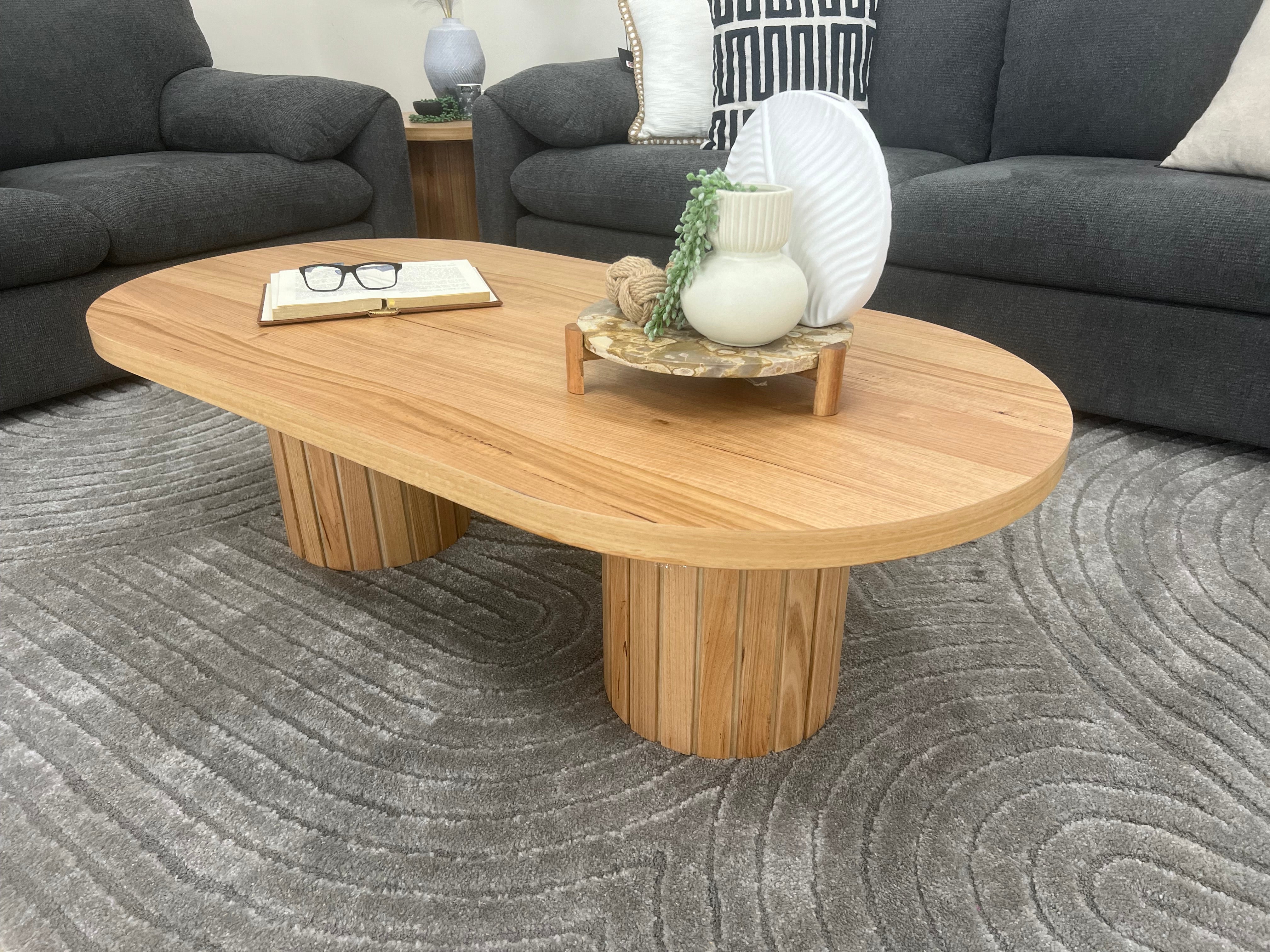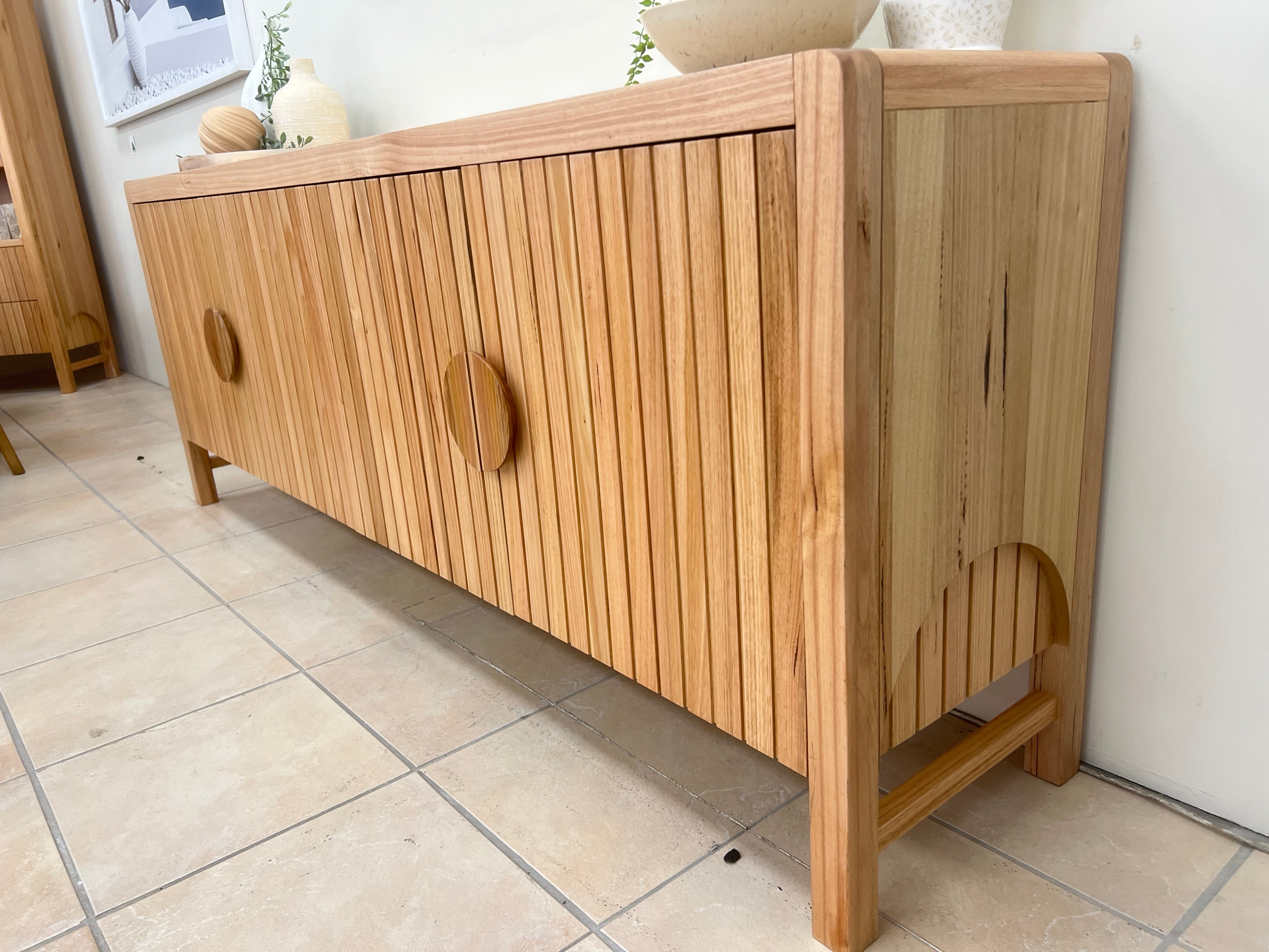 This stunning natural Australian messmate timber piece from our Morocco collection showcases breathtaking fluted styling and impeccable attention to detail. Enjoy the unique beauty and warmth of this handcrafted furniture for a truly one-of-a-kind addition to your home.