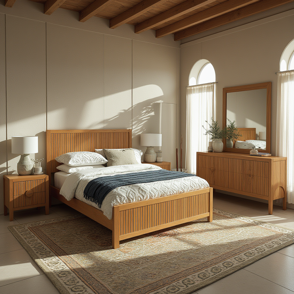 With gentle grains, a light an airy but every varying colour palette, our Morocco bed features a fluted head and foot board, solid timber slats and a very simple construction.