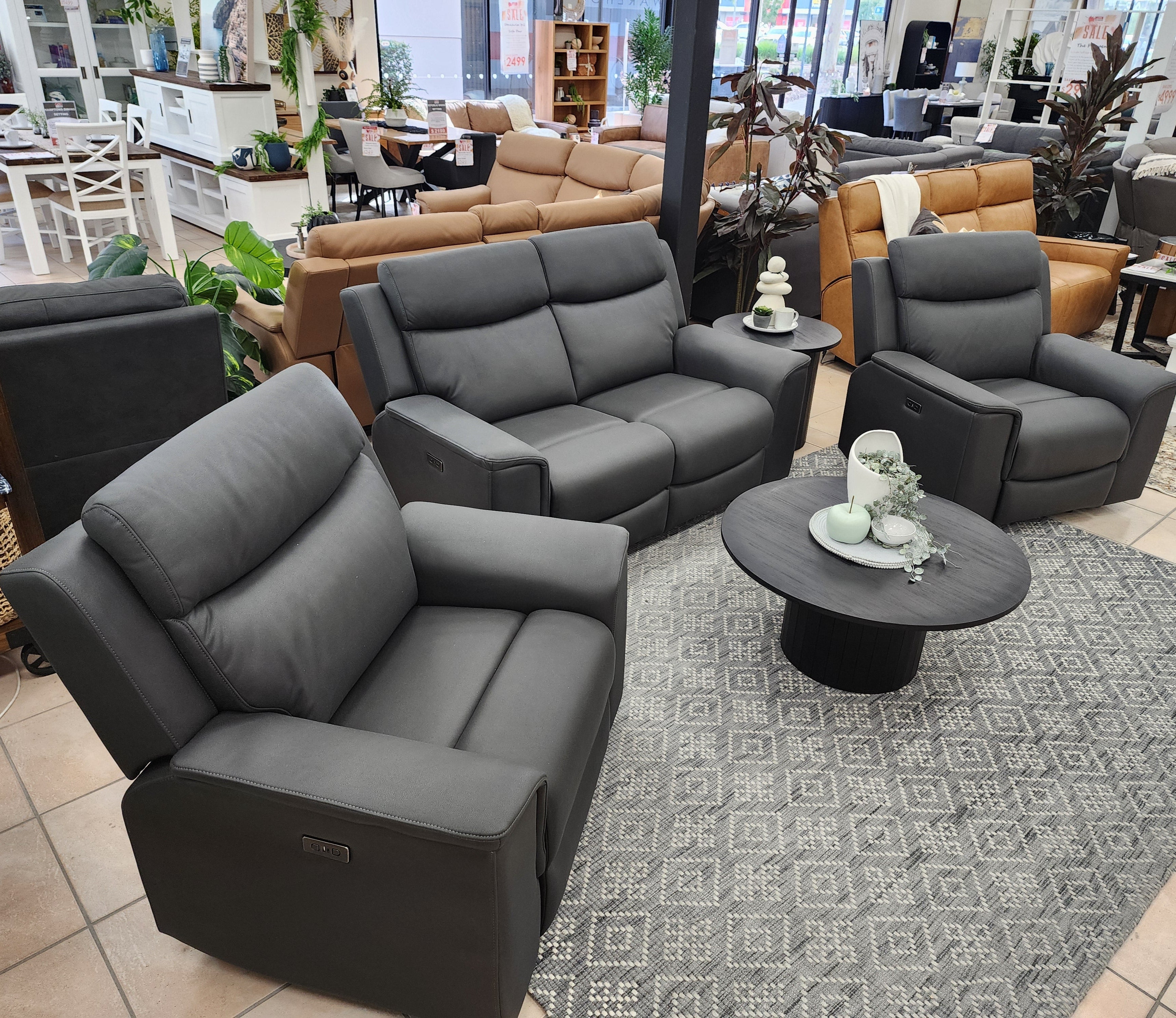 Experience unparalleled comfort and convenience with our Newport 2+1+1 Package. Featuring a 2 seater and 2 single arm chairs with electric recliners for ultimate relaxation. Stay connected with built-in usb/usc chargers while enjoying the durable and easy to clean next gen rhino suede upholstery.