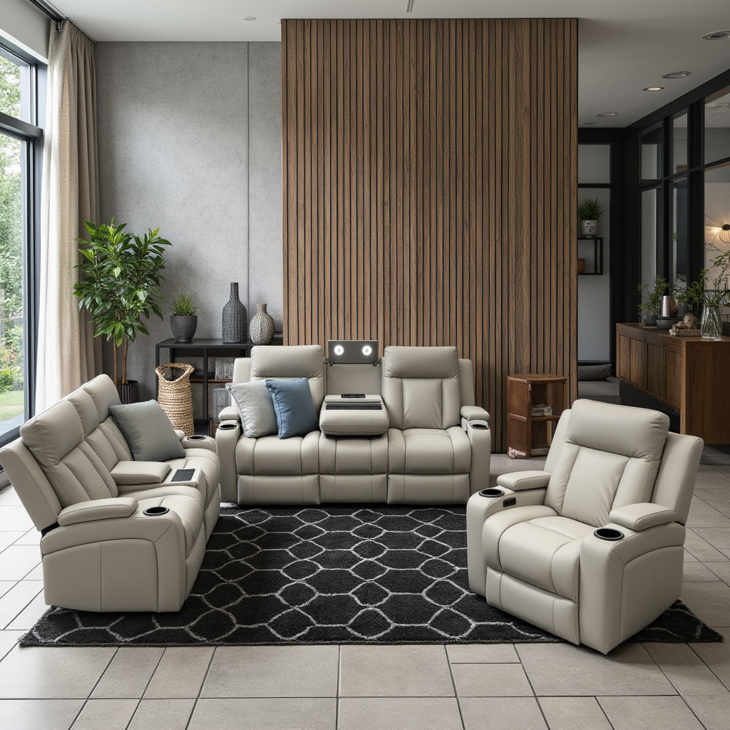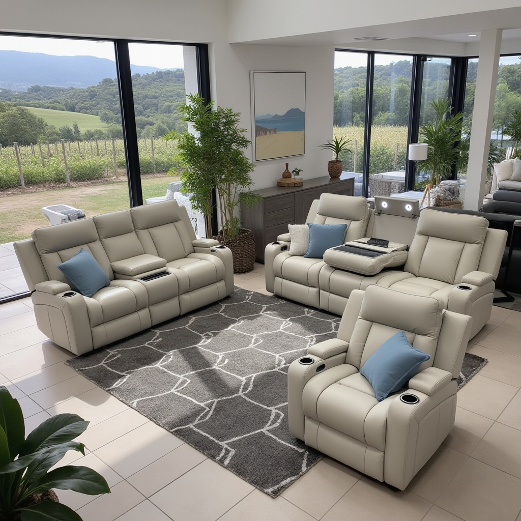 3 seater with dual electric recliners and drop down console with charging and mood lights