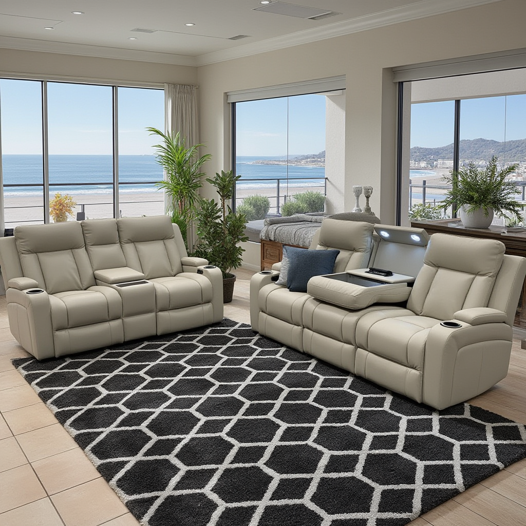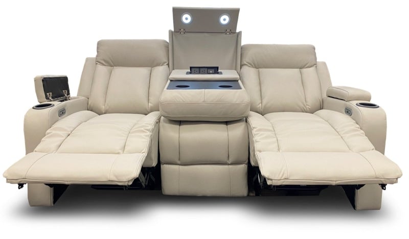 3 seater with dual electric recliners and drop down console with charging and mood lights