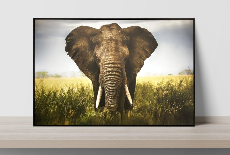 Printed on high quality glossy poly-cotton canvas featuring high whiteness and superior colour brilliance and image definition with UV stabilised solvent ink. The canvas is stretched over a sturdy support frame and is assembled with a Matt open grain stained timber floating moulding with a shadow line, with D-Rings and strung with cord ready to hang.