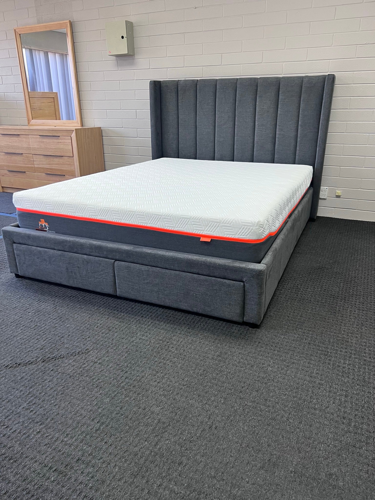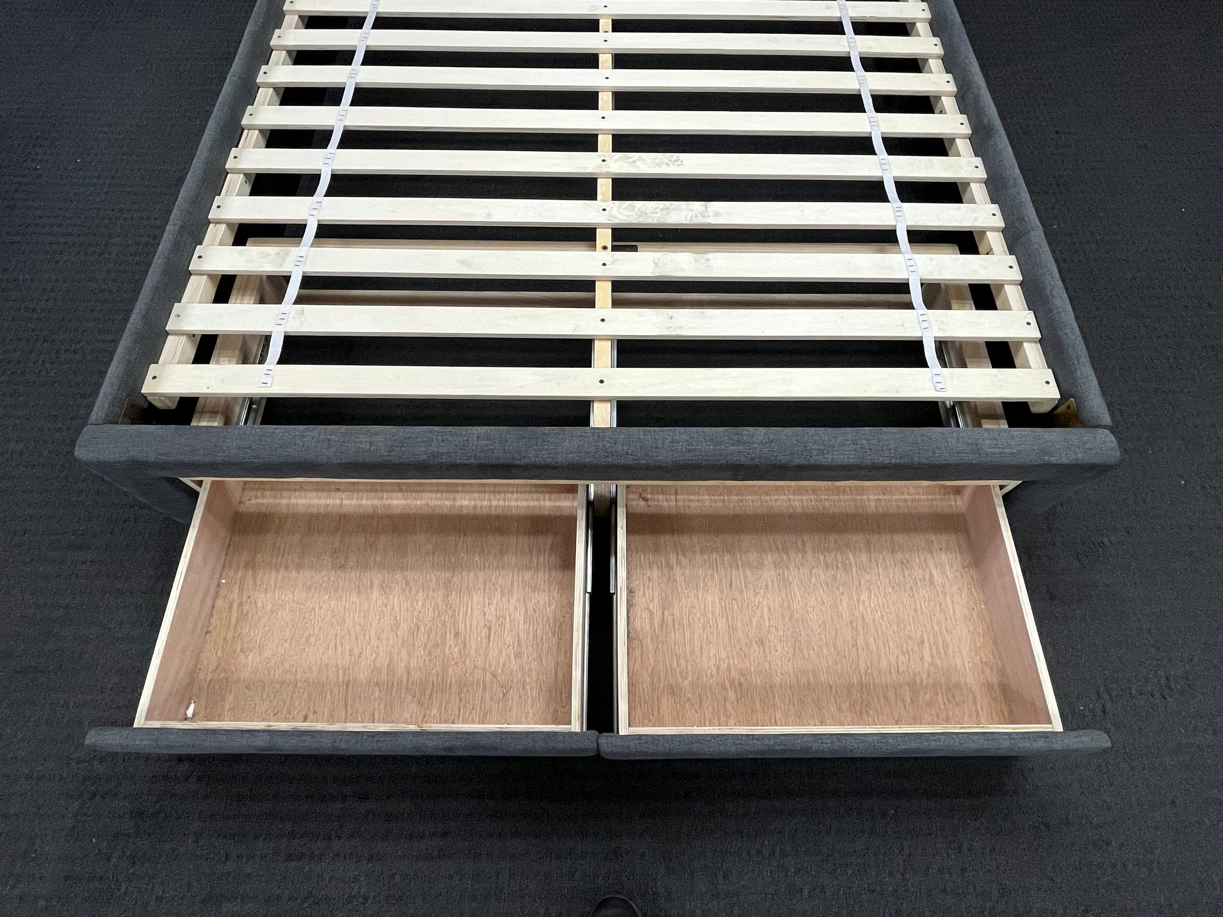 Experience the perfect blend of style and function with our Portland Bed Frame! Its contemporary design will elevate any bedroom, while the heavy duty frame work ensures durability for years to come. Plus, the storage drawers on runners provide convenient and practical storage, making this bed frame a must-have for any modern home. Available in various sizes and colors!