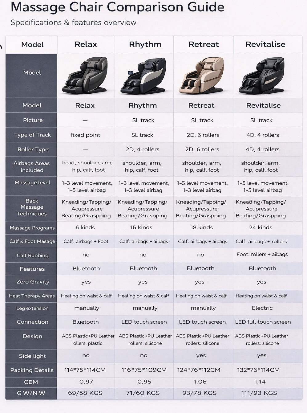 • Comprehensive Airbag & Roller Foot Massage