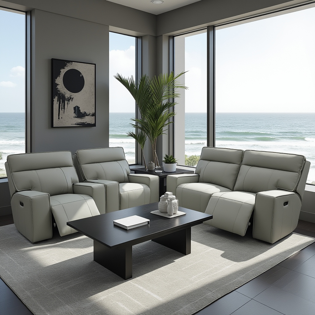 Experience ultimate relaxation and luxury with the Rockville Dual Motion Recliner Package. Crafted with 100% premium leather, this package includes a 2 seater and two recliner chairs, all equipped with electric recliners and separate electric headrests. Choose from a range of colors to match your style and elevate your living space.