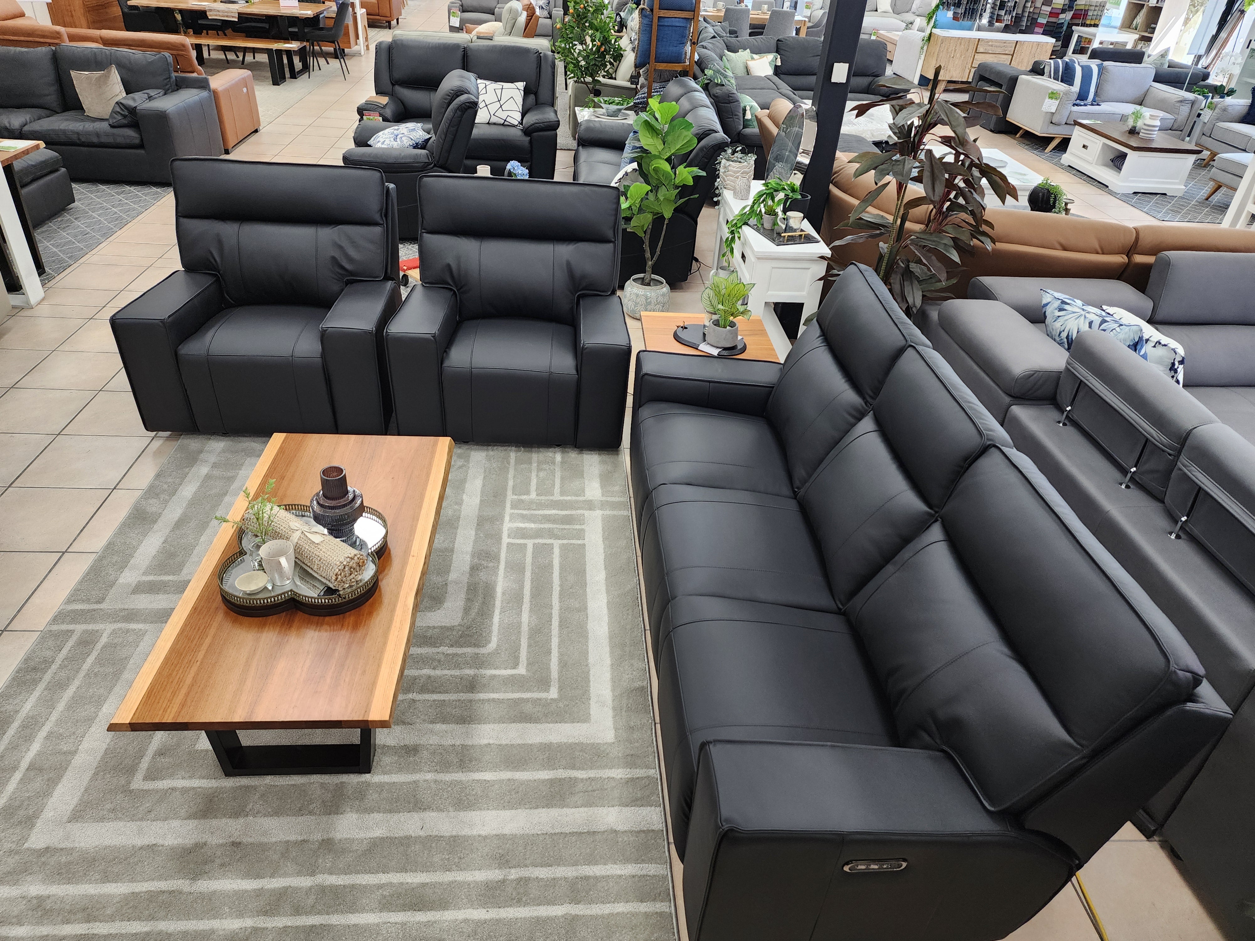 Experience ultimate comfort with the Rockville 3+1+1 Dual Motion Recliner Package. Made of 100% premium leather, this package includes a 3 seater and 2 separate recliner chairs, all with electric recliners and head rests. Choose from a variety of colors to match your style. Upgrade your relaxation game today.