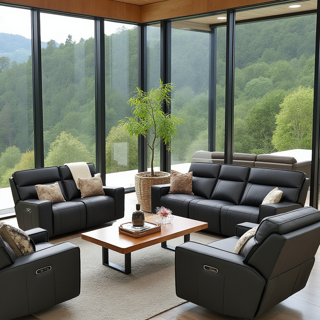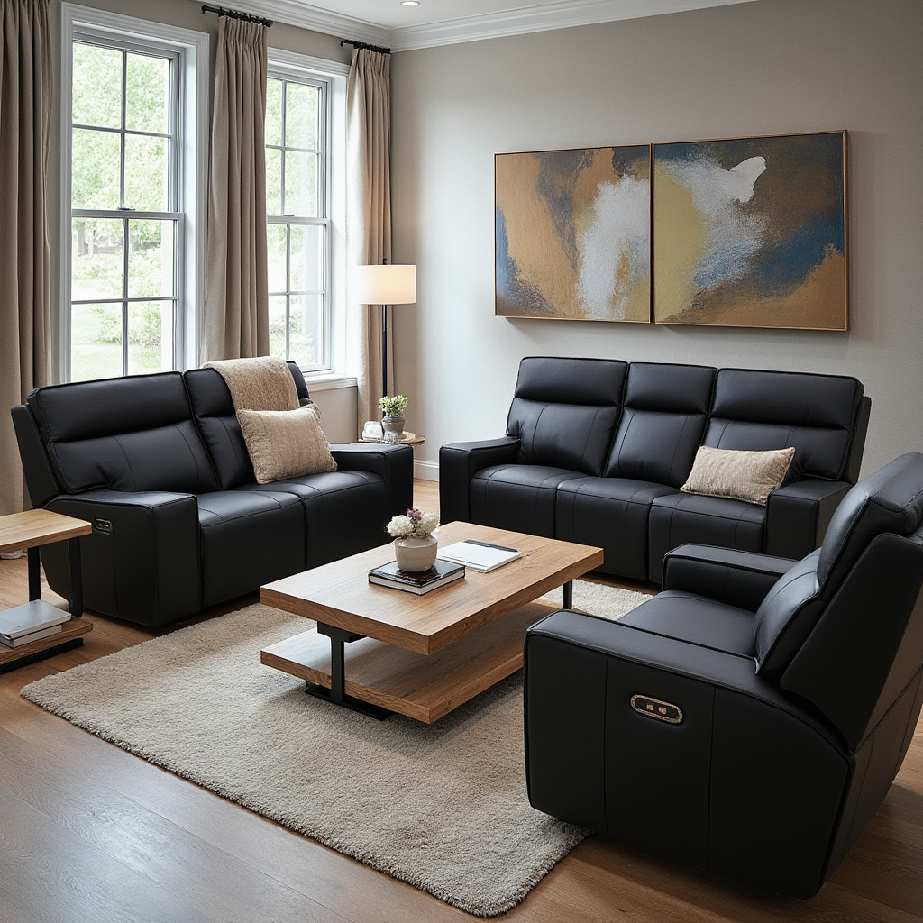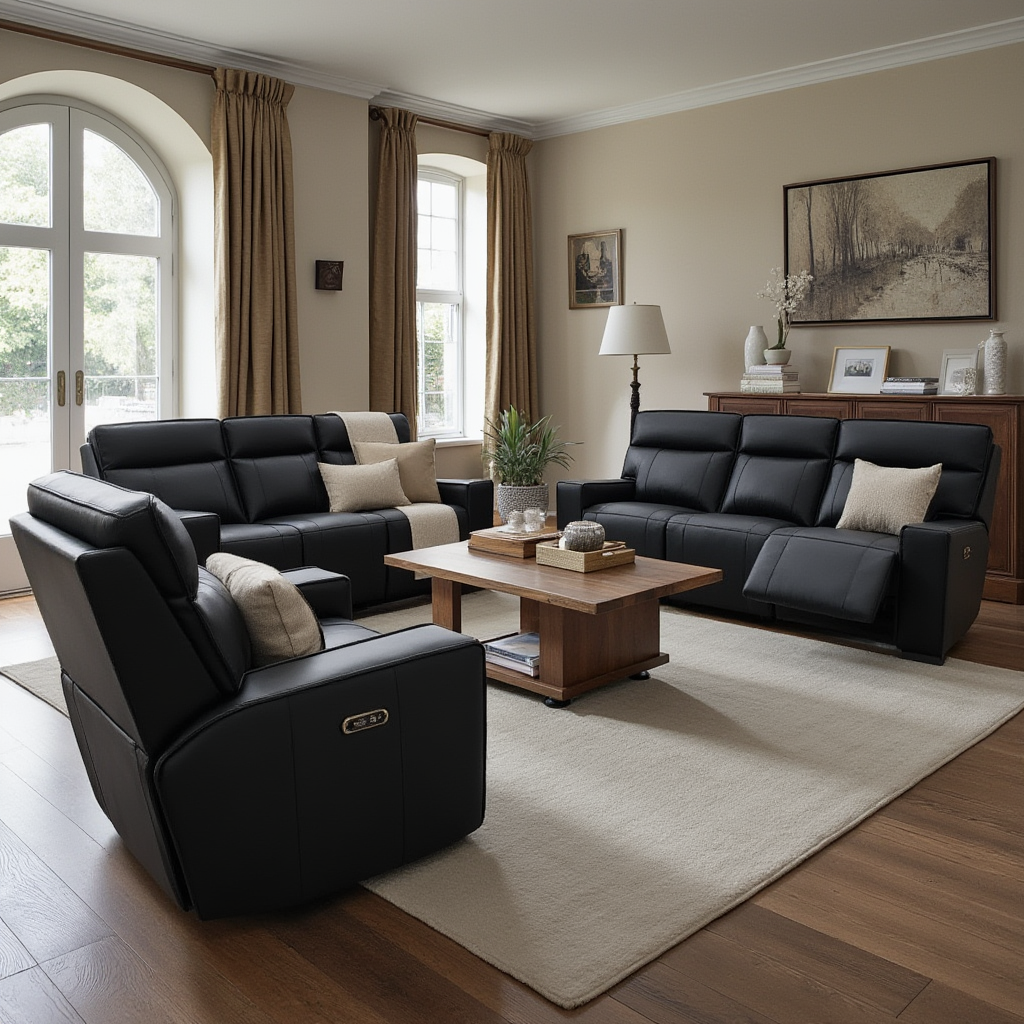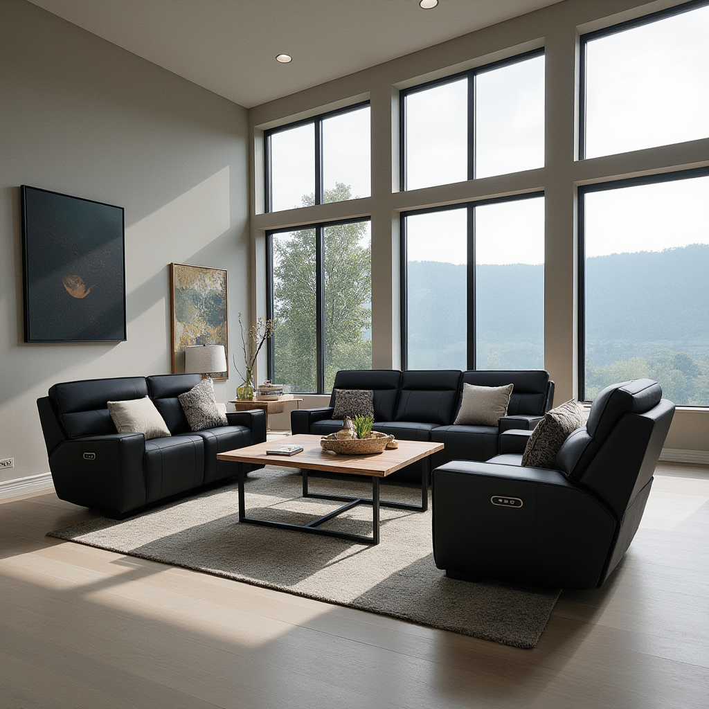 Upgrade your living room with the luxurious Rockville 3+2+1 Dual Motion Recliner Package. Made with 100% premium leather, this package includes a 3 seater, 2 seater, and arm chair, all equipped with electric recliners and head rest control for ultimate relaxation. Available in a variety of colors to complement any decor.