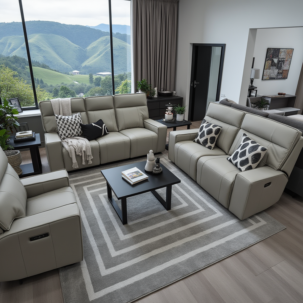 Embrace the thrill of comfort and style with the Rockville 3+2+1 Dual Motion Recliner Package in Grey Leather. The 100% premium leather package includes a 3 seater, 2 seater, and 1 recliner chair, all with electric reclining and separate electric head rests. Choose from a variety of colors to suit your bold and daring lifestyle.