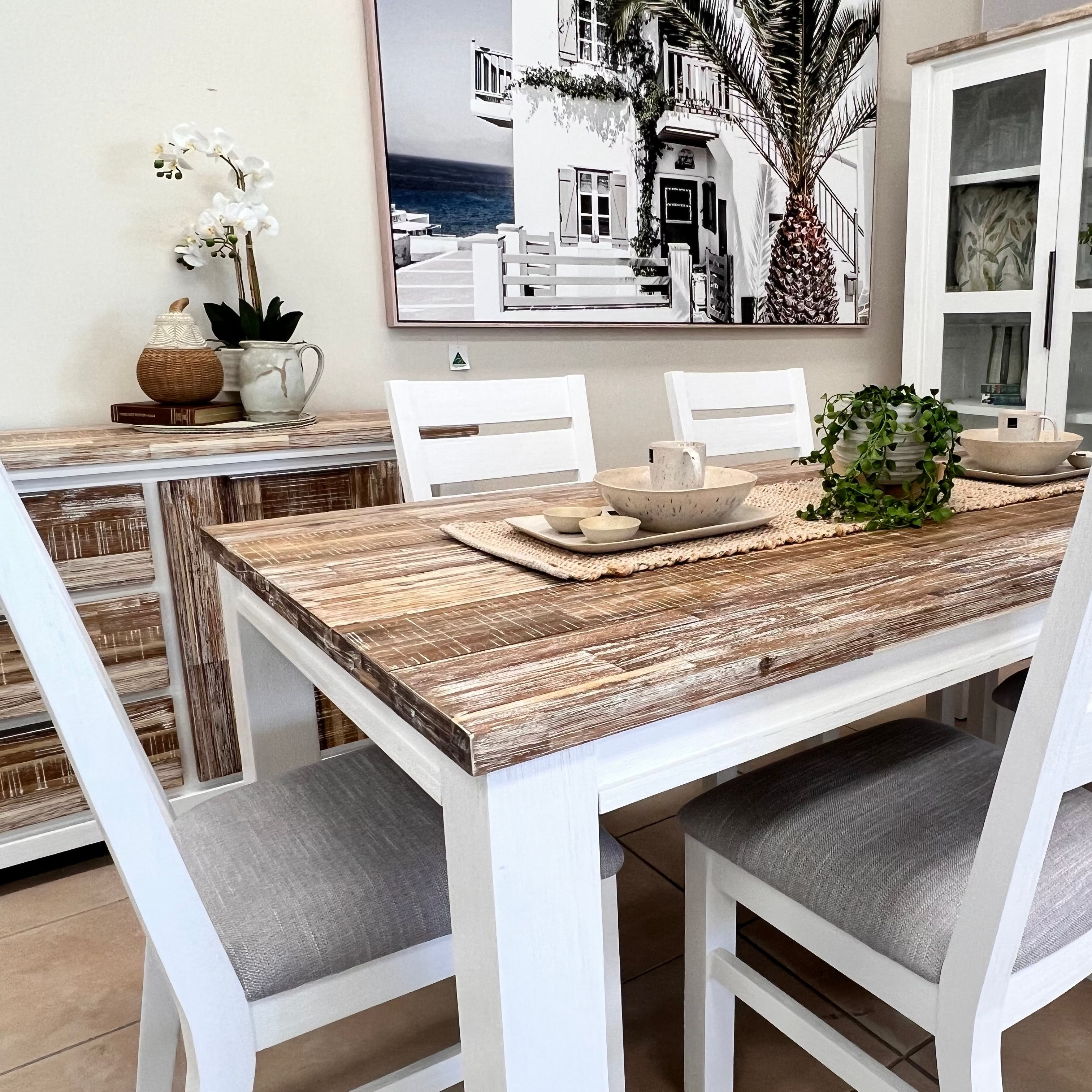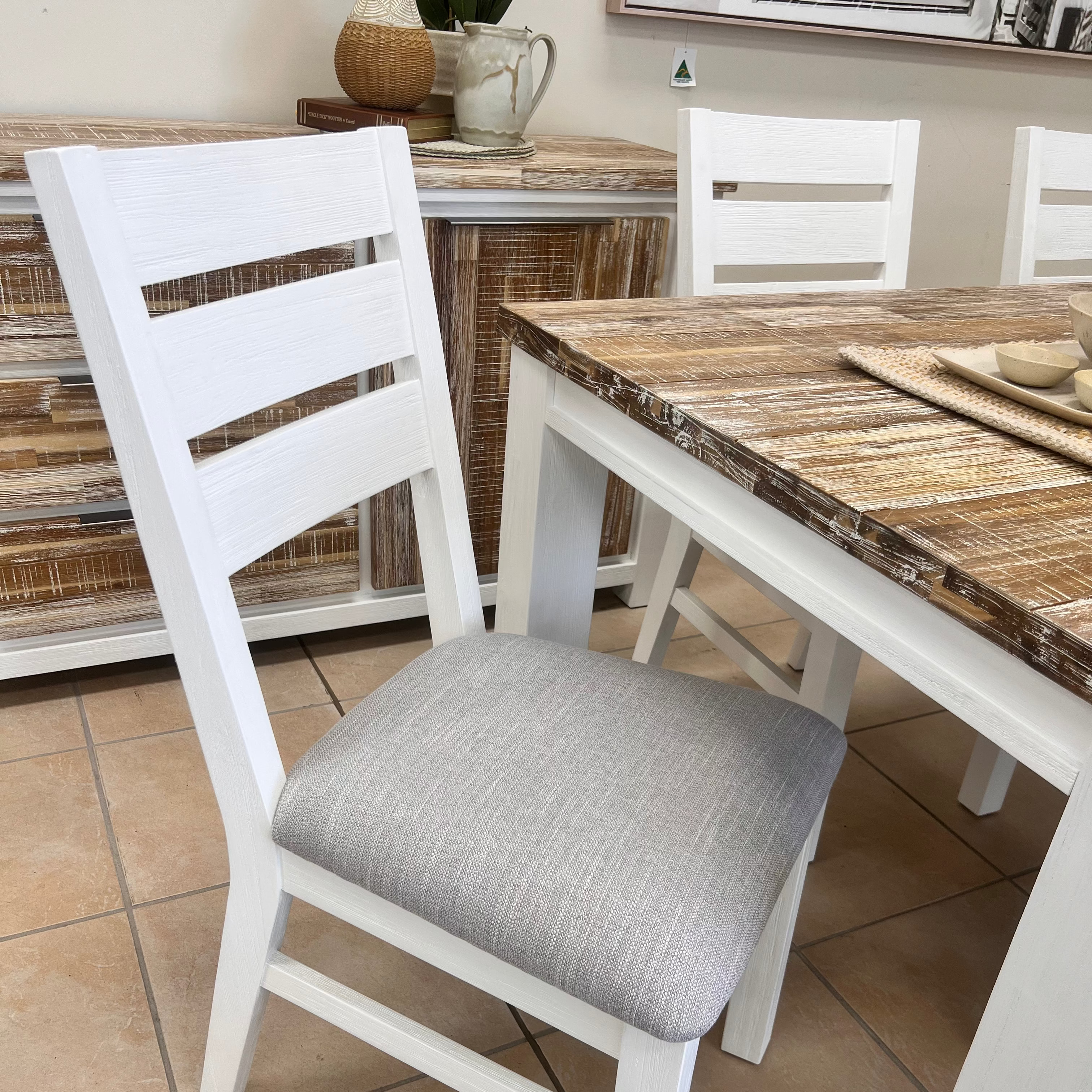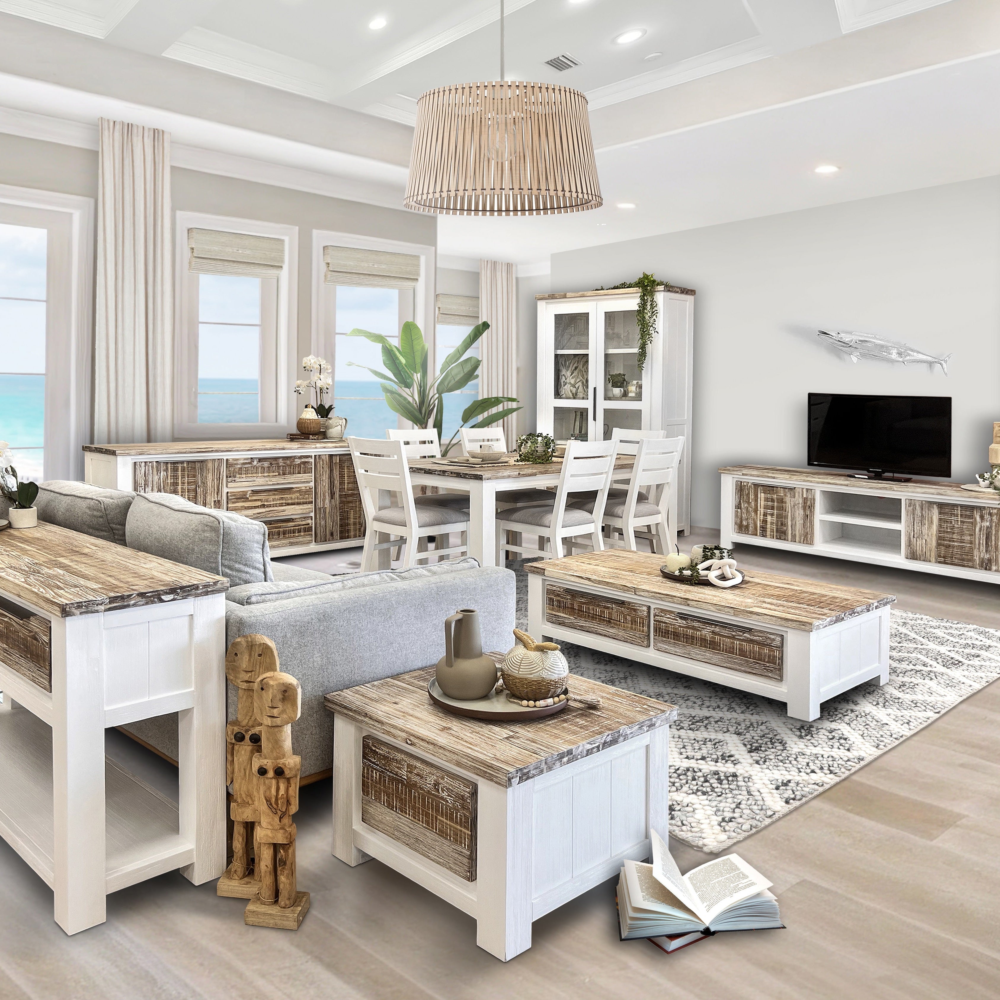 Experience the luxury of classic living with the Springbrook driftwood and crisp white combination. This furniture is made from solid hardwood and is available as an entire dining, living and bedroom combination. Enjoy a timeless style and bring sophistication to your home.