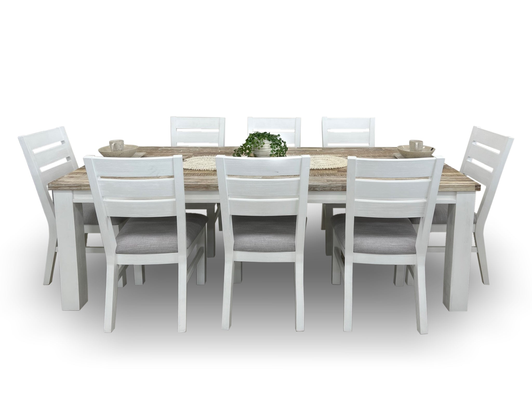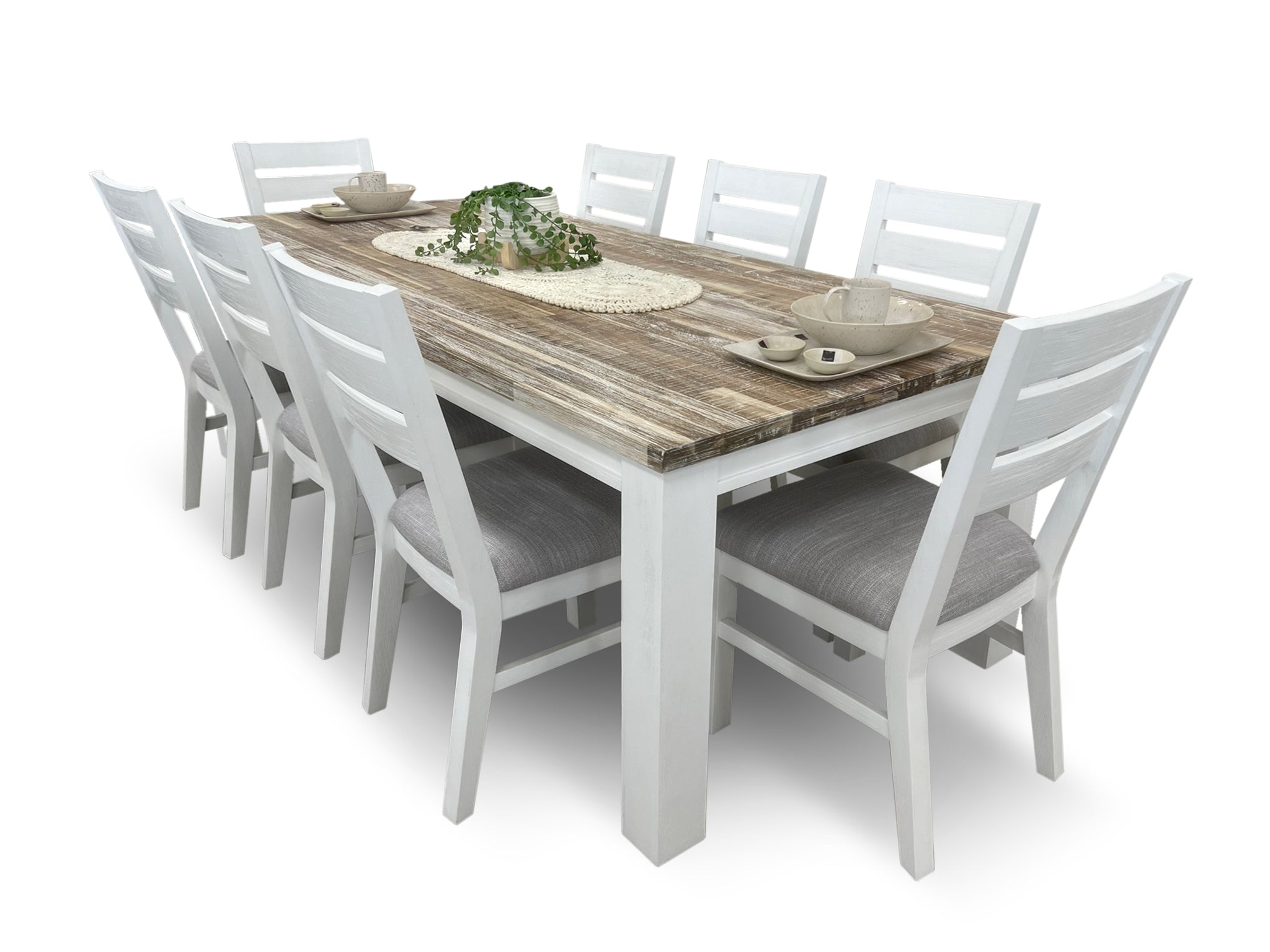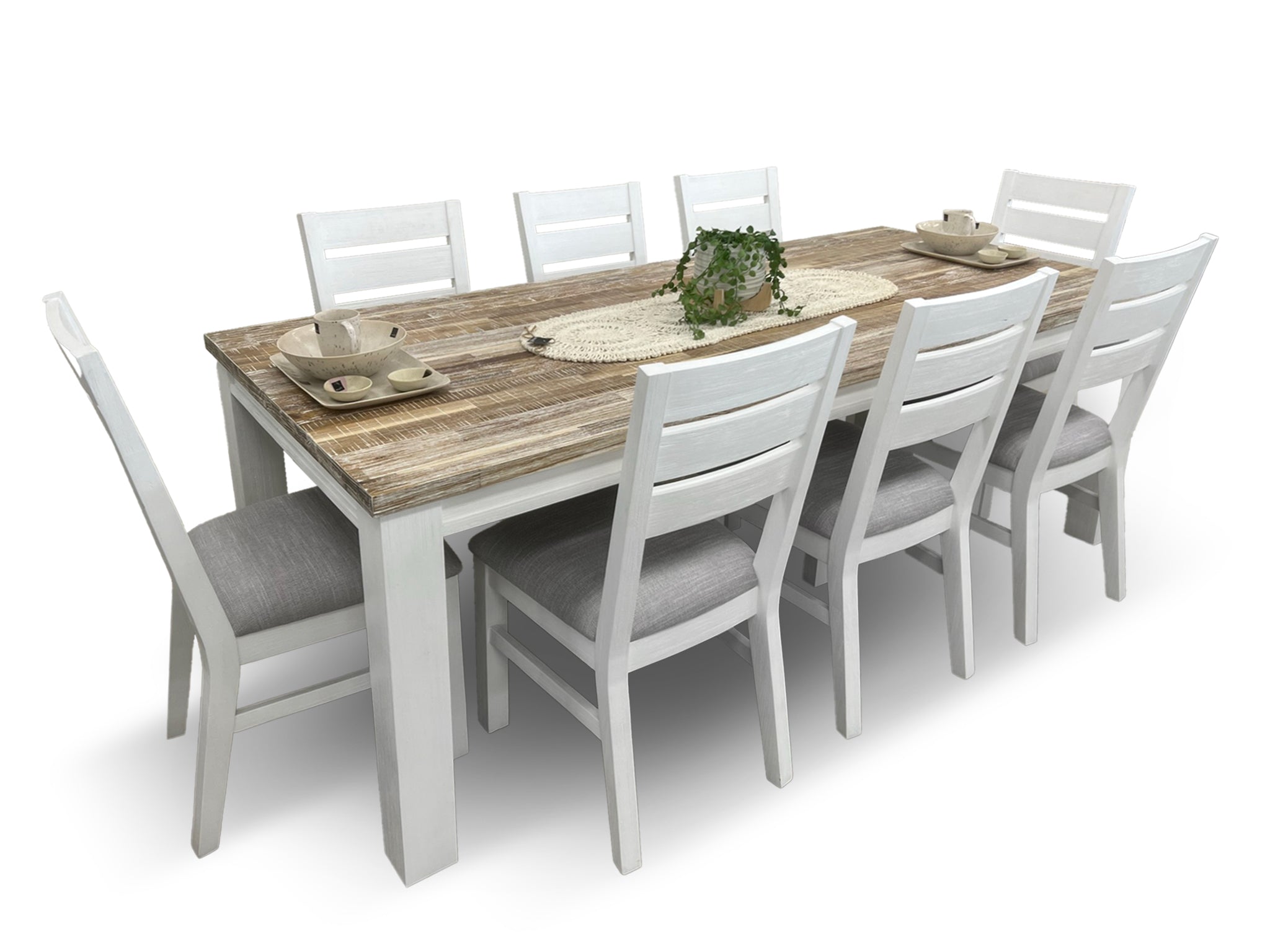 Experience the luxury of classic living with the Springbrook driftwood and crisp white combination. This furniture is made from solid hardwood and is available as an entire dining, living and bedroom combination. Enjoy a timeless style and bring sophistication to your home.