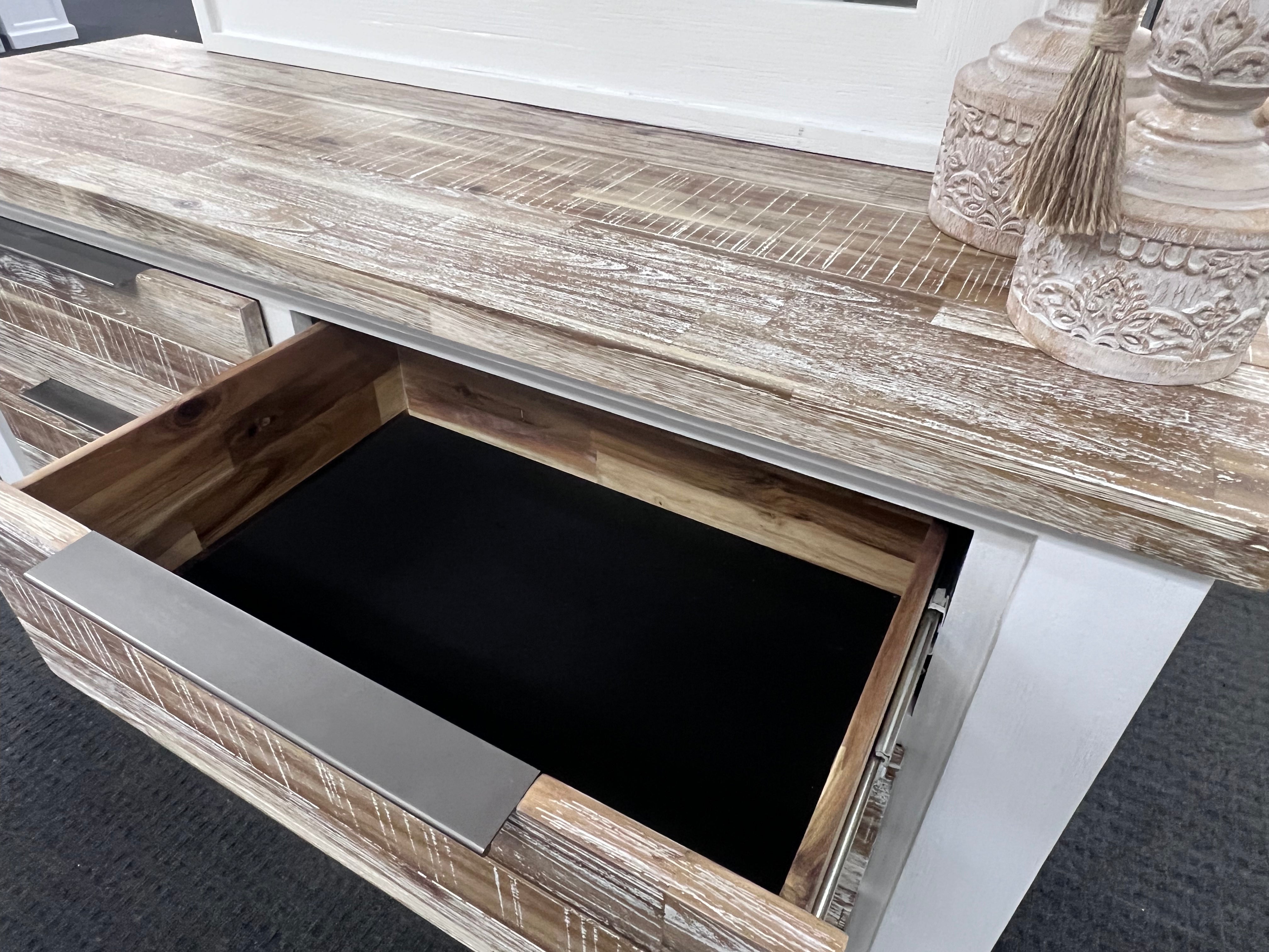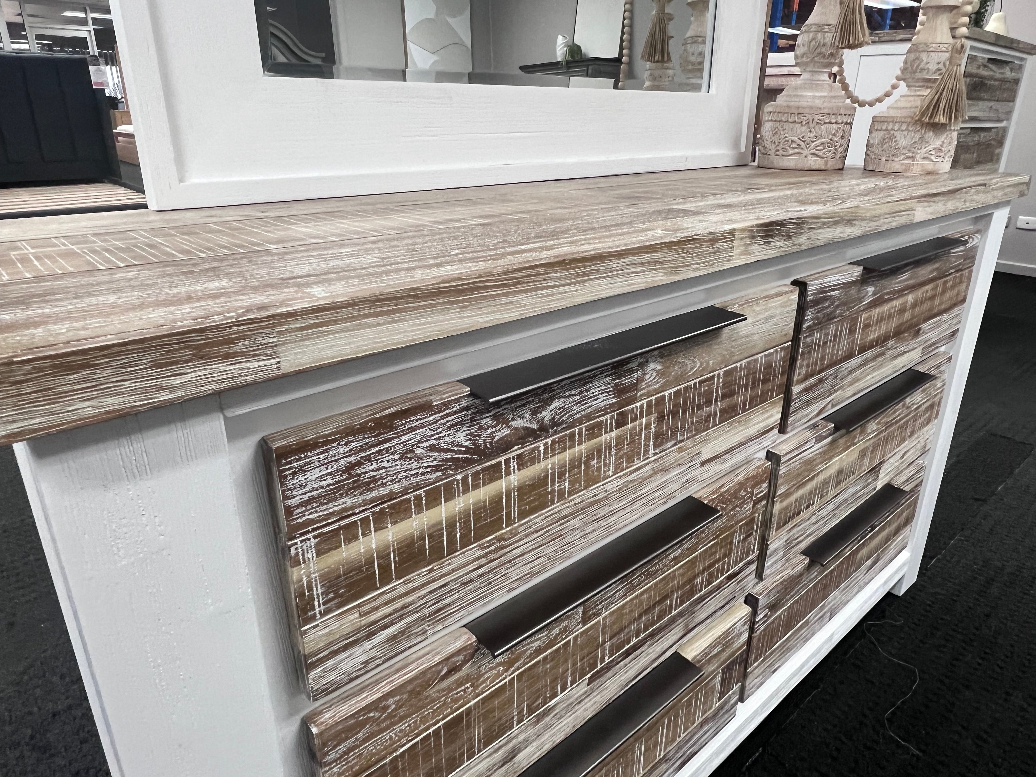 Experience the luxury of classic living with the Springbrook driftwood and crisp white combination. This furniture is made from solid hardwood and is available as an entire dining, living and bedroom combination. Enjoy a timeless style and bring sophistication to your home.
