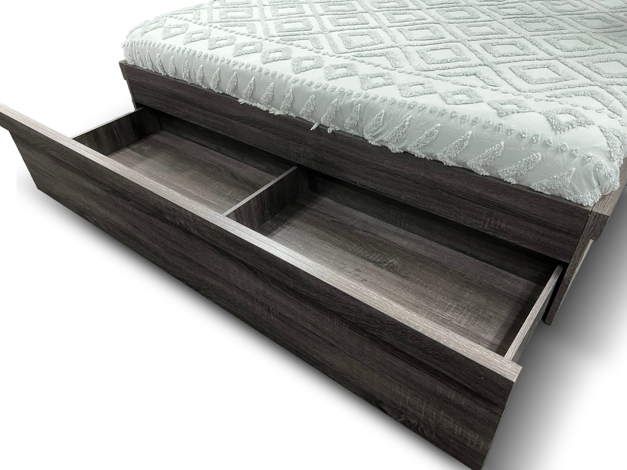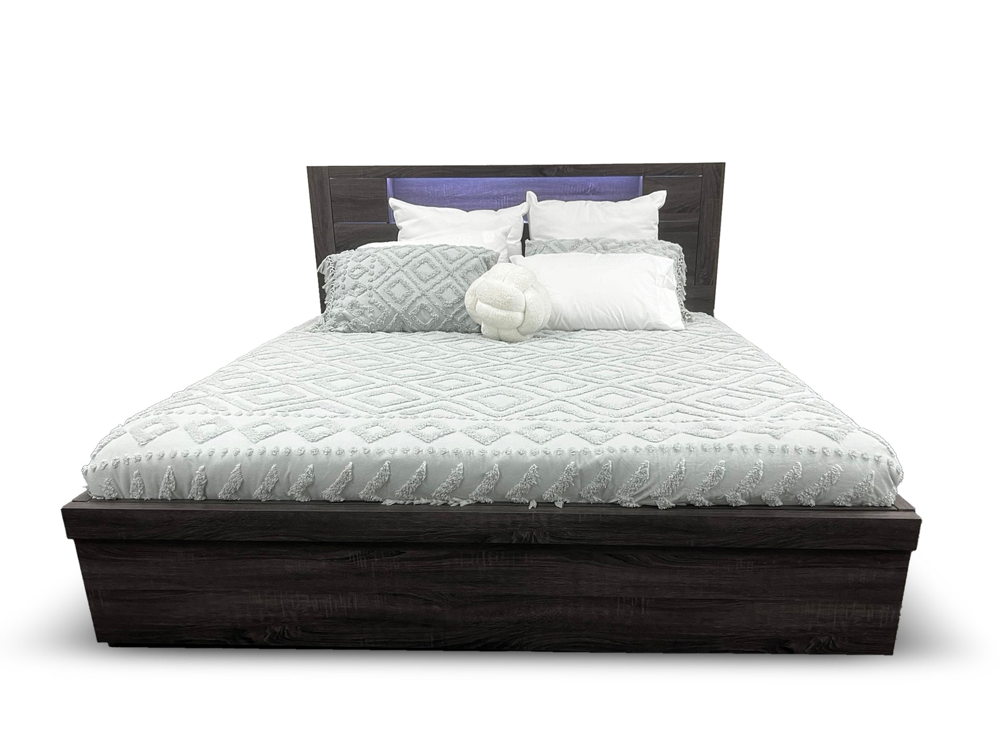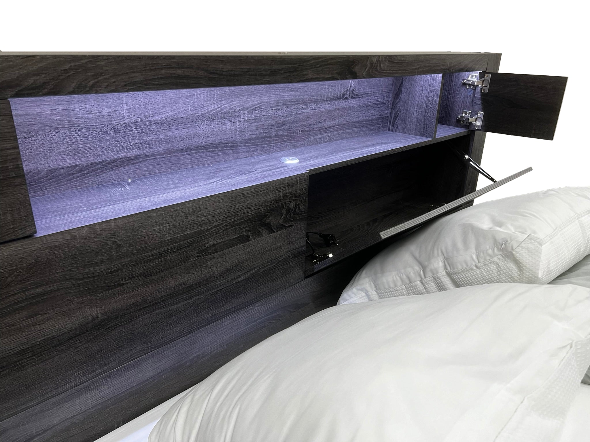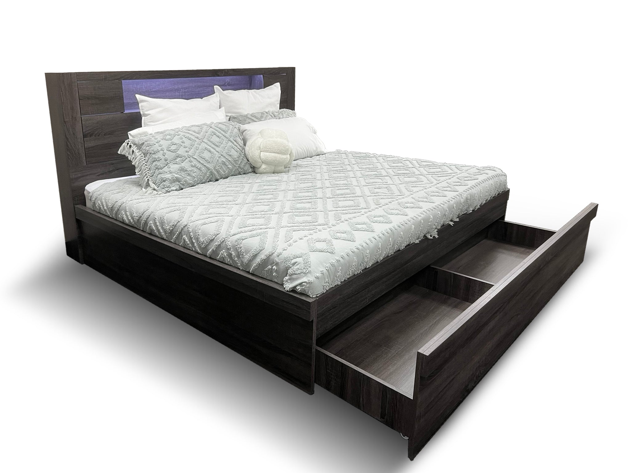Add some practical style to your bedroom with the Vienna queen size bed in grey. With plenty of storage and an LED headboard light, this bed is perfect for any statement piece or as part of a matching suite. Say goodbye to clutter and hello to a good night's sleep!