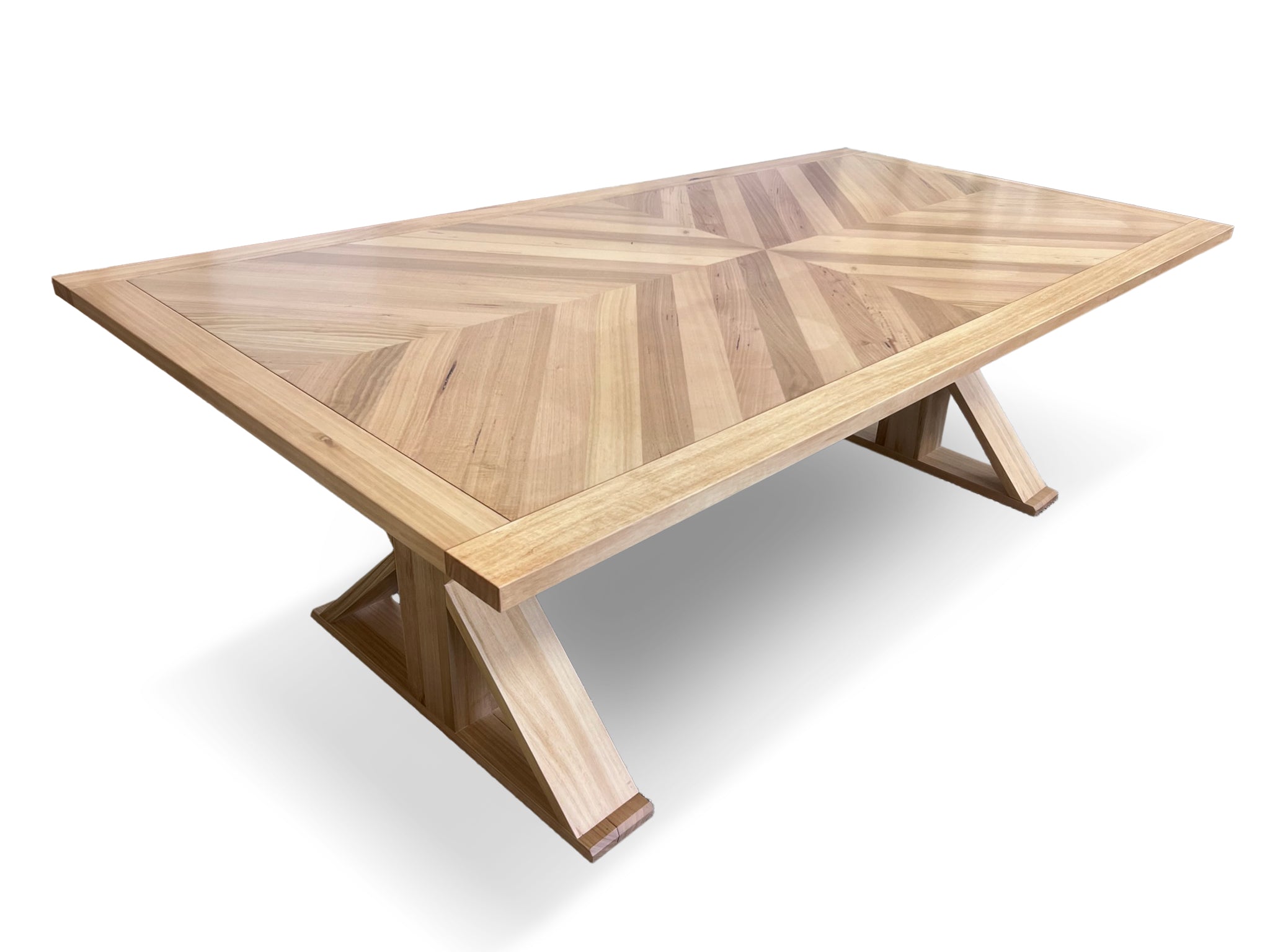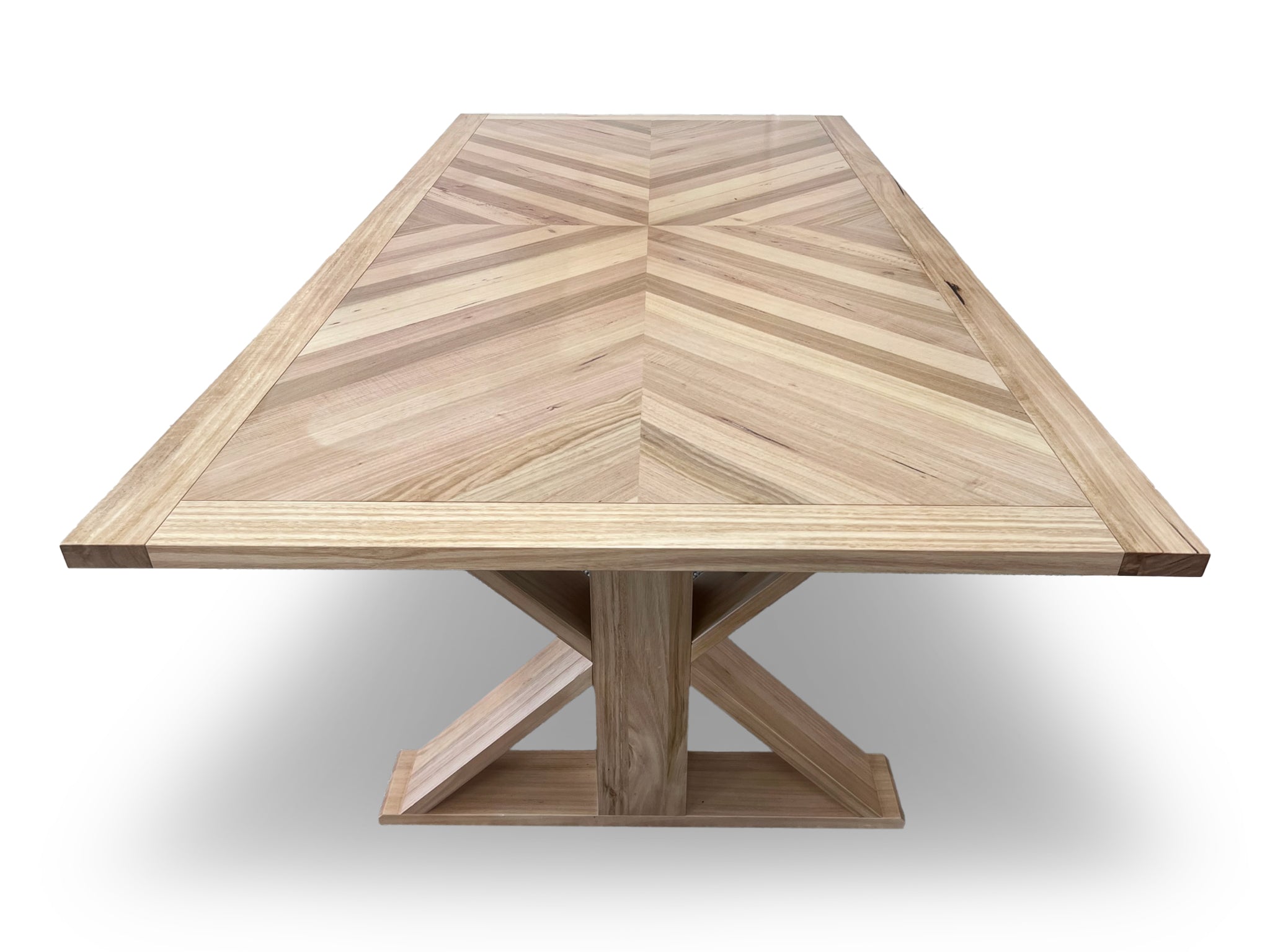 Bring a regal elegance to your dining area. Our stunning Westport range is featured in Messmate Timbers with a clear coat allowing for the pure beauty and design of the parquetry inlay to truly be the star of the show.